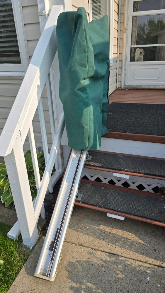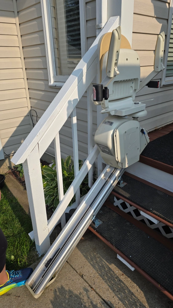 Selling an Acorn Superglide 130 T700 Outdoor Stairlift. It's designed for outdoor use and can support up to 300lbs (127 kg). It comes with remote controls for easy operation.