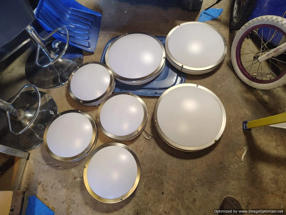 Surface Flush mount LED light fixtures- 12inch - $10 Each & 16inch-$15 each. And miscellaneous light fixtures above Dining area and Vanity