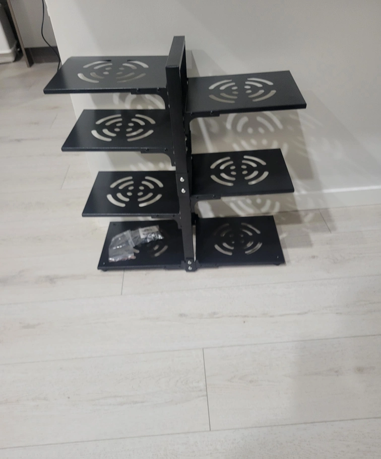 This black pot rack organizer is perfect for keeping your kitchen tidy. It has four tiers to store your pots, pans, and lids.