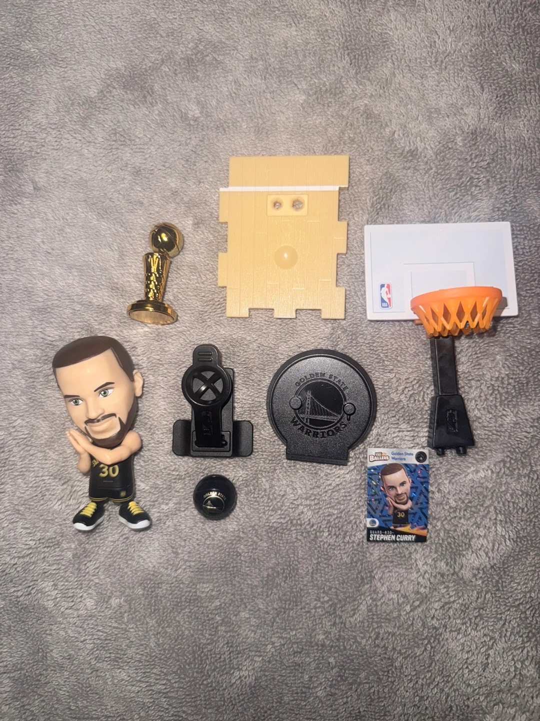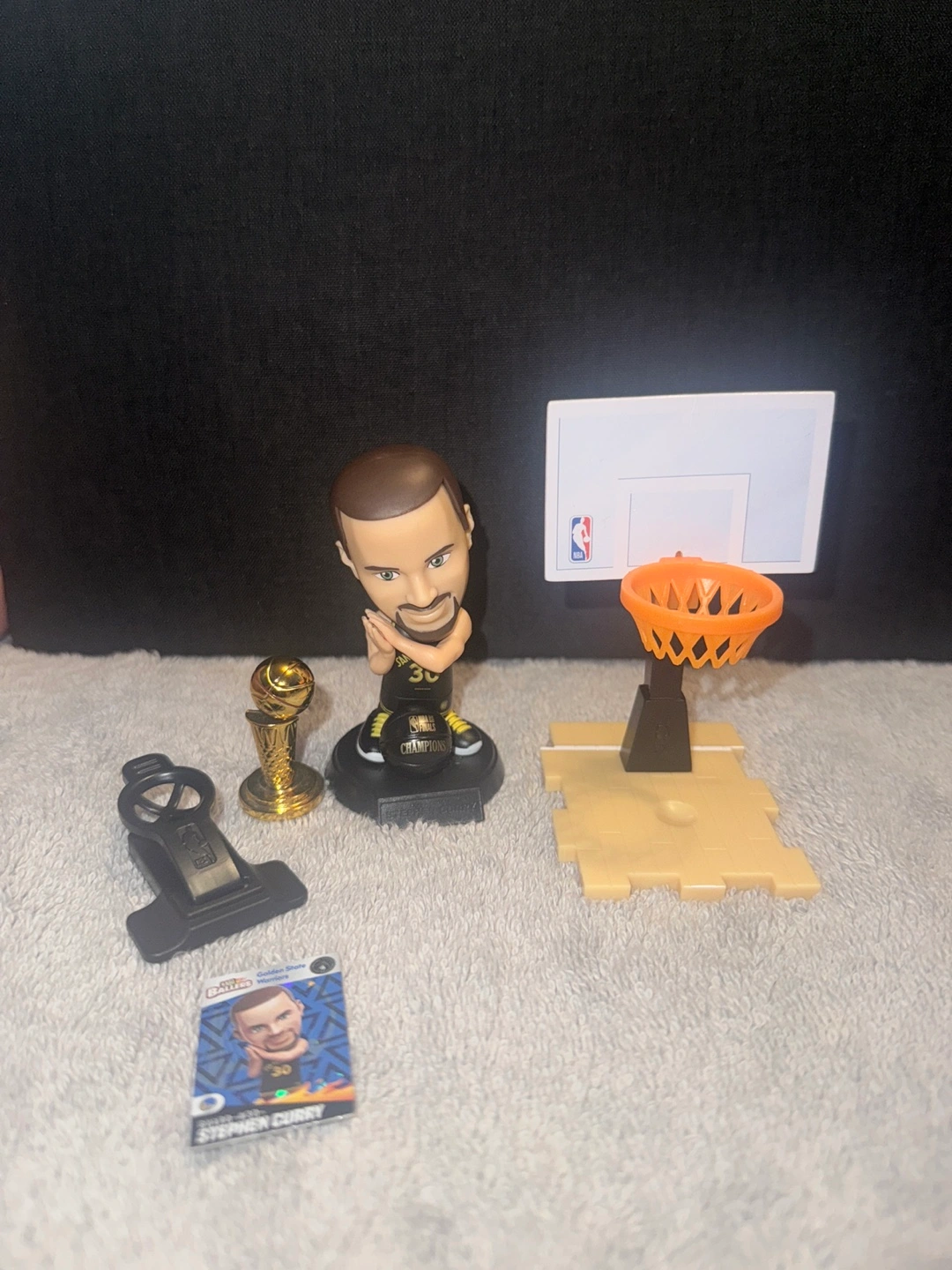 Selling a Stephen Curry “Super Rare”NBA Zuru mini figure with Golden State Warriors branding! It comes with a basketball hoop, a base, and a miniature championship trophy. Perfect for any basketball fan or collector!