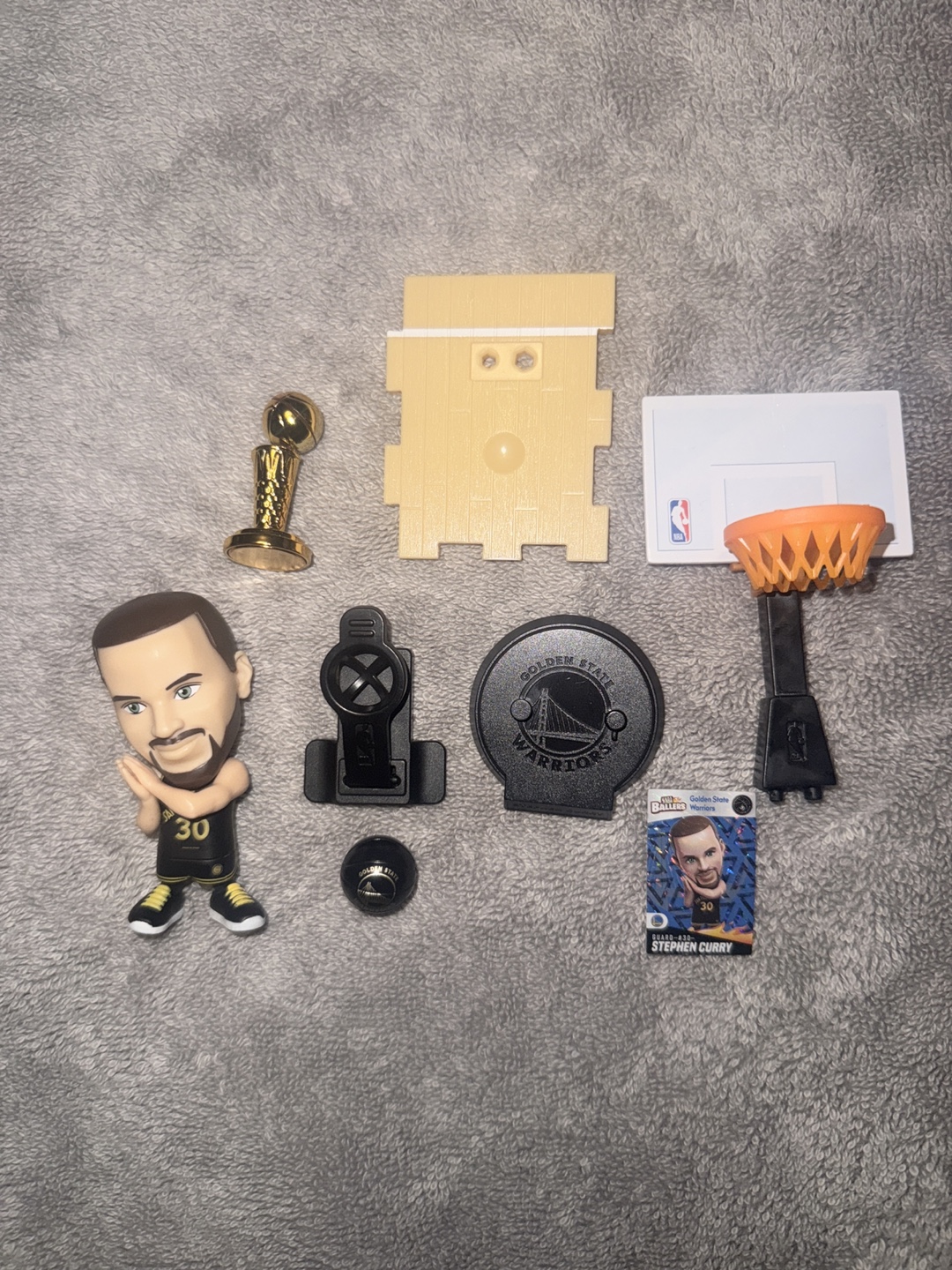 Selling a Stephen Curry “Super Rare”NBA Zuru mini figure with Golden State Warriors branding! It comes with a basketball hoop, a base, and a miniature championship trophy. Perfect for any basketball fan or collector!
