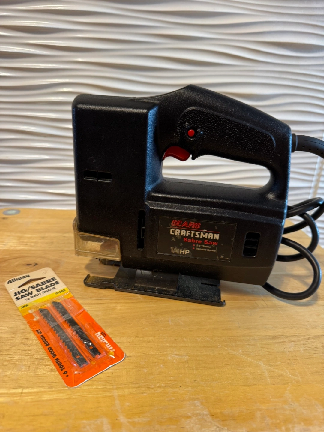 Buy & SellSears Craftsman Sabre Grip Jig Saw 1/4 HPSears Craftsman Sabre Grip Jig Saw 1/4 HP$20Selling a Sears Craftsman Sabre Grip Jig Saw with 1/4 HP. It comes with Allway Jig/Sabre Saw Blades for 1/4 inch shank. Good for beginners!ConditionGoodWHERE TO MEETForest HillsView MapSELLERverifiedJoeRego Park41728 reviews1 chats·1 favorites·26 views