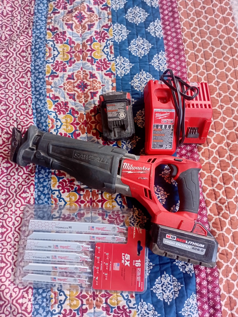 Selling a Milwaukee FUEL SAWZALL M18. It comes with the battery, charger, and a set of TORCH SAWZALL blades. The battery is an M18 RED LITHIUM HIGH OUTPUT XC6.0. Ready to get the job done! comes with extra battery