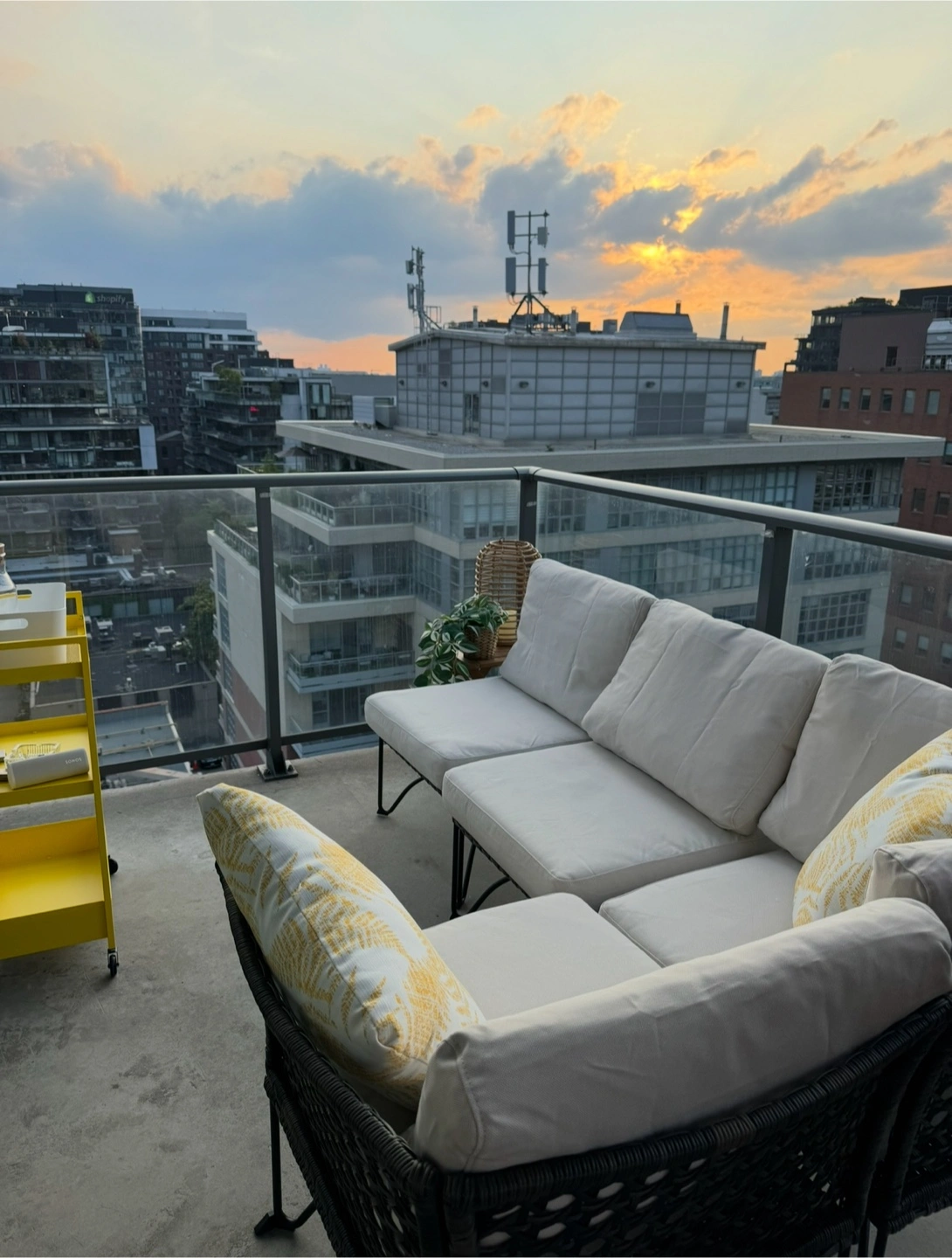 65Bought last summer, in good condition. Just need to wipe the cushions. The modular design allows all pieces to move around and be arranged to fit your space perfectly. Perfect for balcony, patio, or backyard. Water resistant. Pick up near King & Spadina Cash or e-transfer accepted.