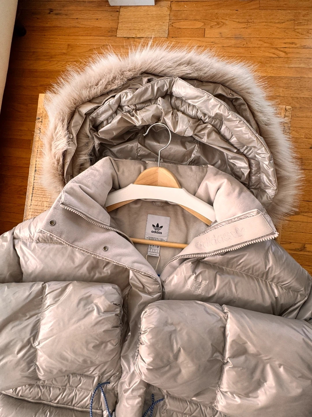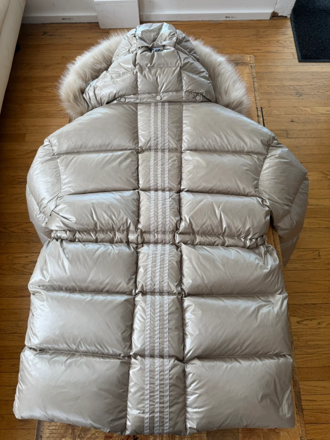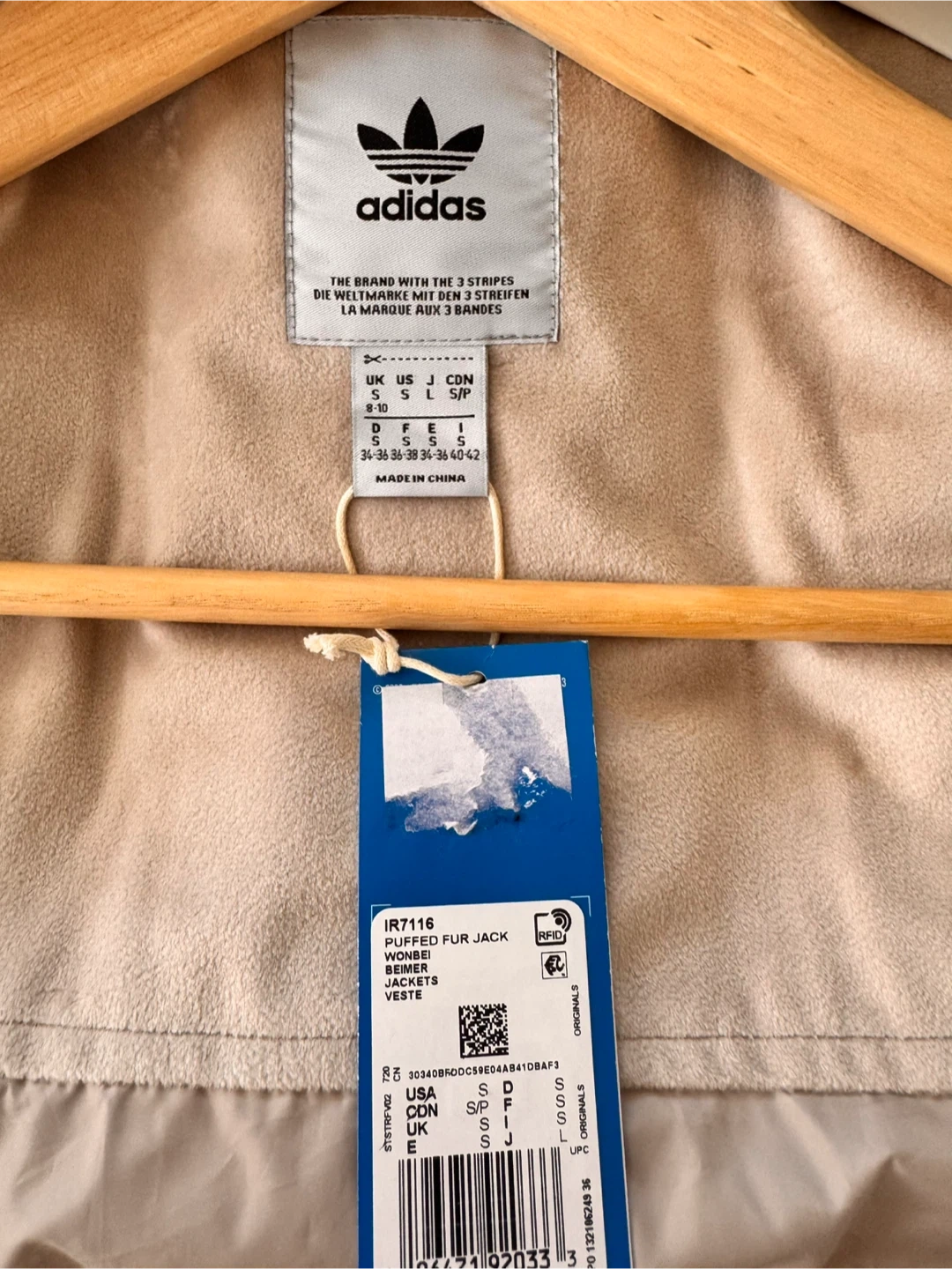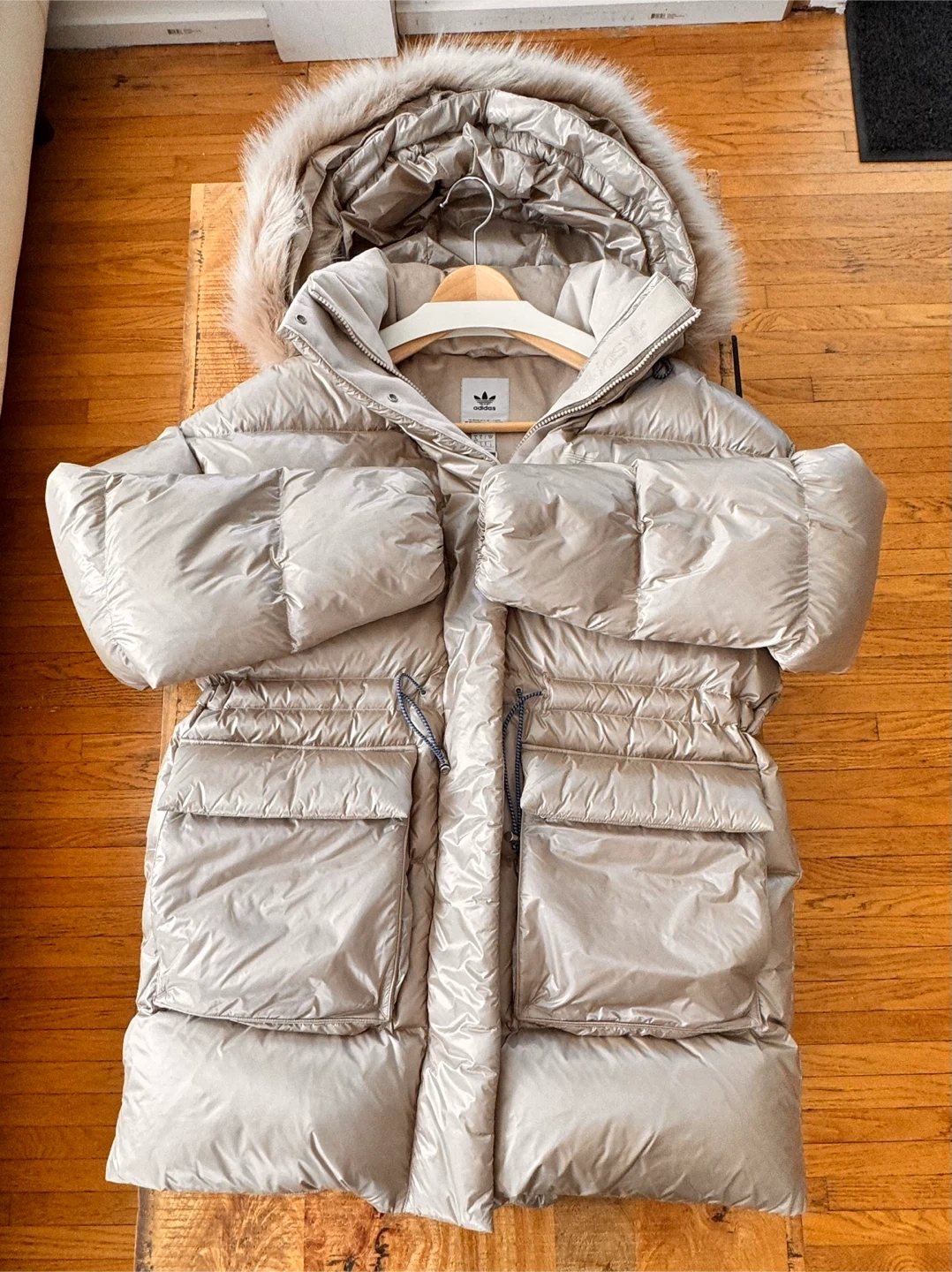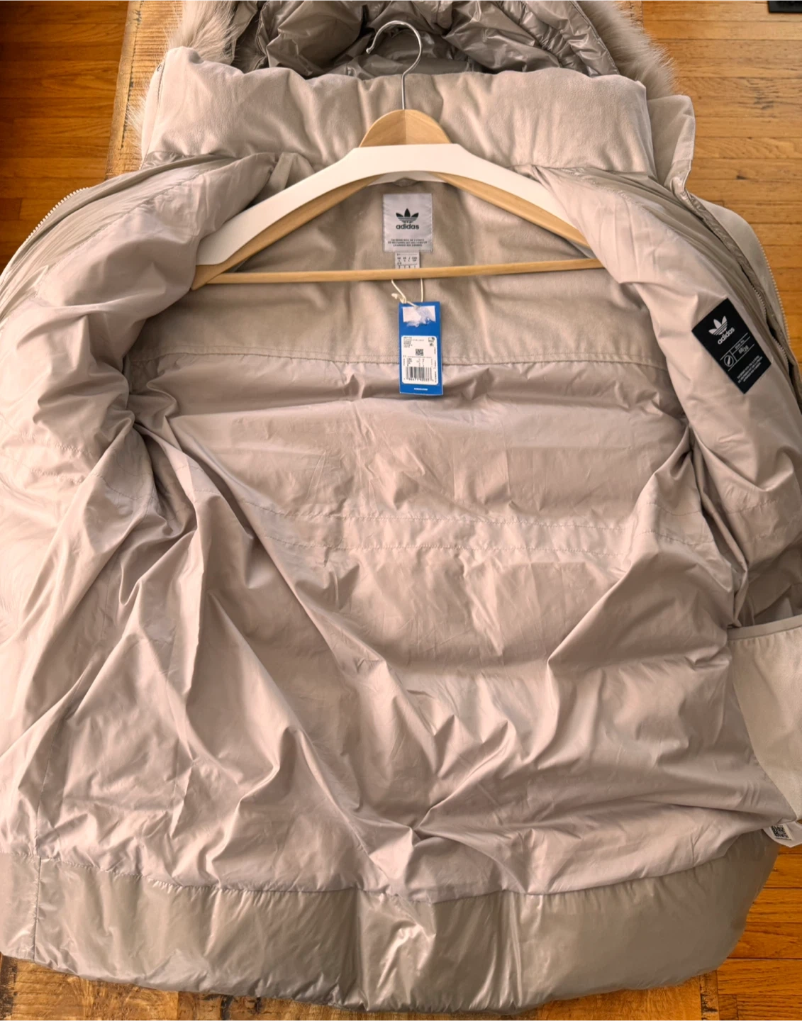 Selling an Adidas Puffed Long Fur Jacket in size S )origami price $439.99) new with tags and ready to keep you warm this winter! The jacket features a stylish design with a fur-trimmed hood and a comfortable fit. Perfect for those chilly Canadian days! Pick up at Long Branch Open to reasonable offers. Too Low would will be ignore. Cash only