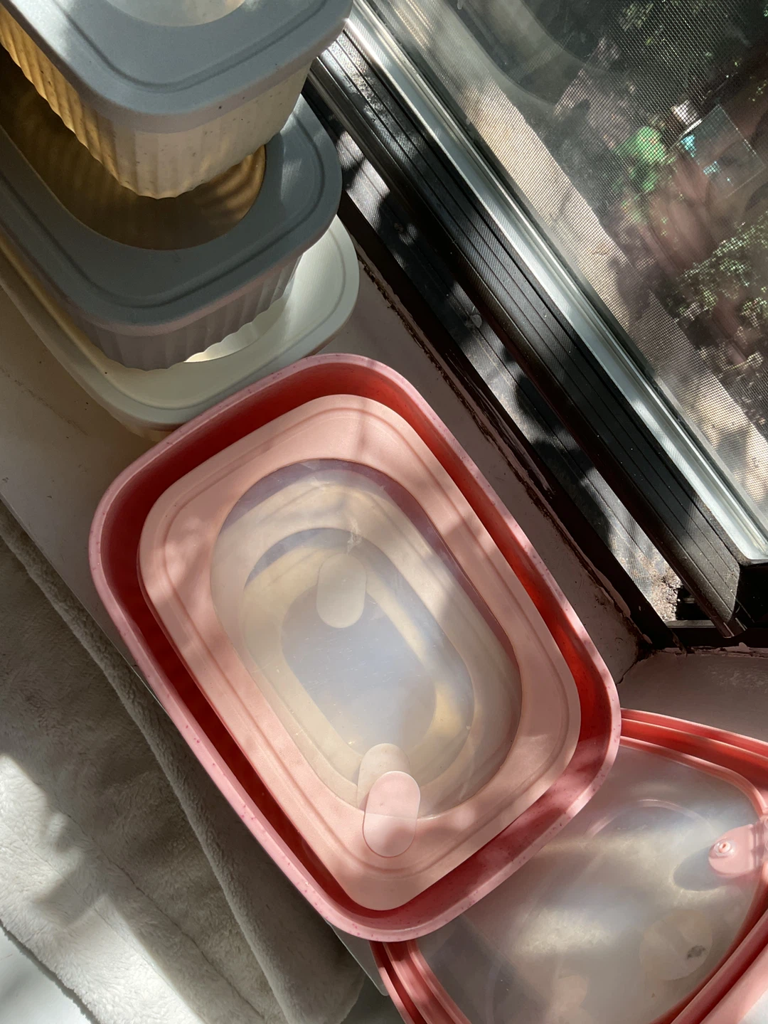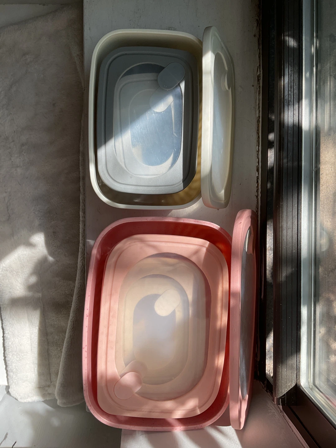 I'm selling a set of 6 collapsible food storage containers! They come in various sizes and colors, total 2set , pink and gray. These containers are perfect for saving space in small kitchen and are lightweight and portable for on-the-go use.