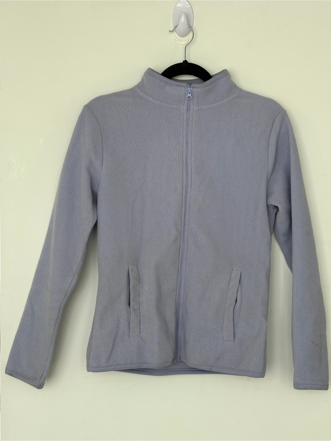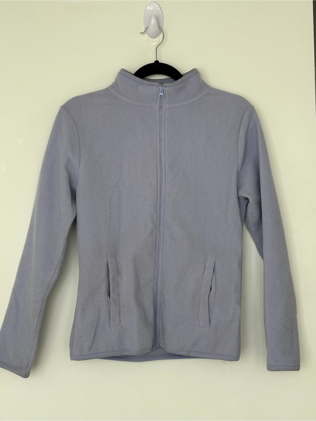 A cozy fleece jacket in a lovely light purple colour! It's perfect for layering or wearing on its own during those cooler days. The jacket is in great condition and ready for a new home