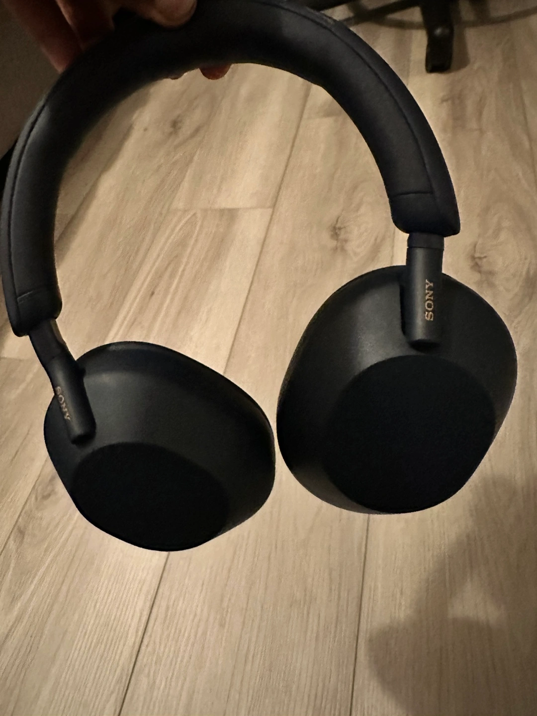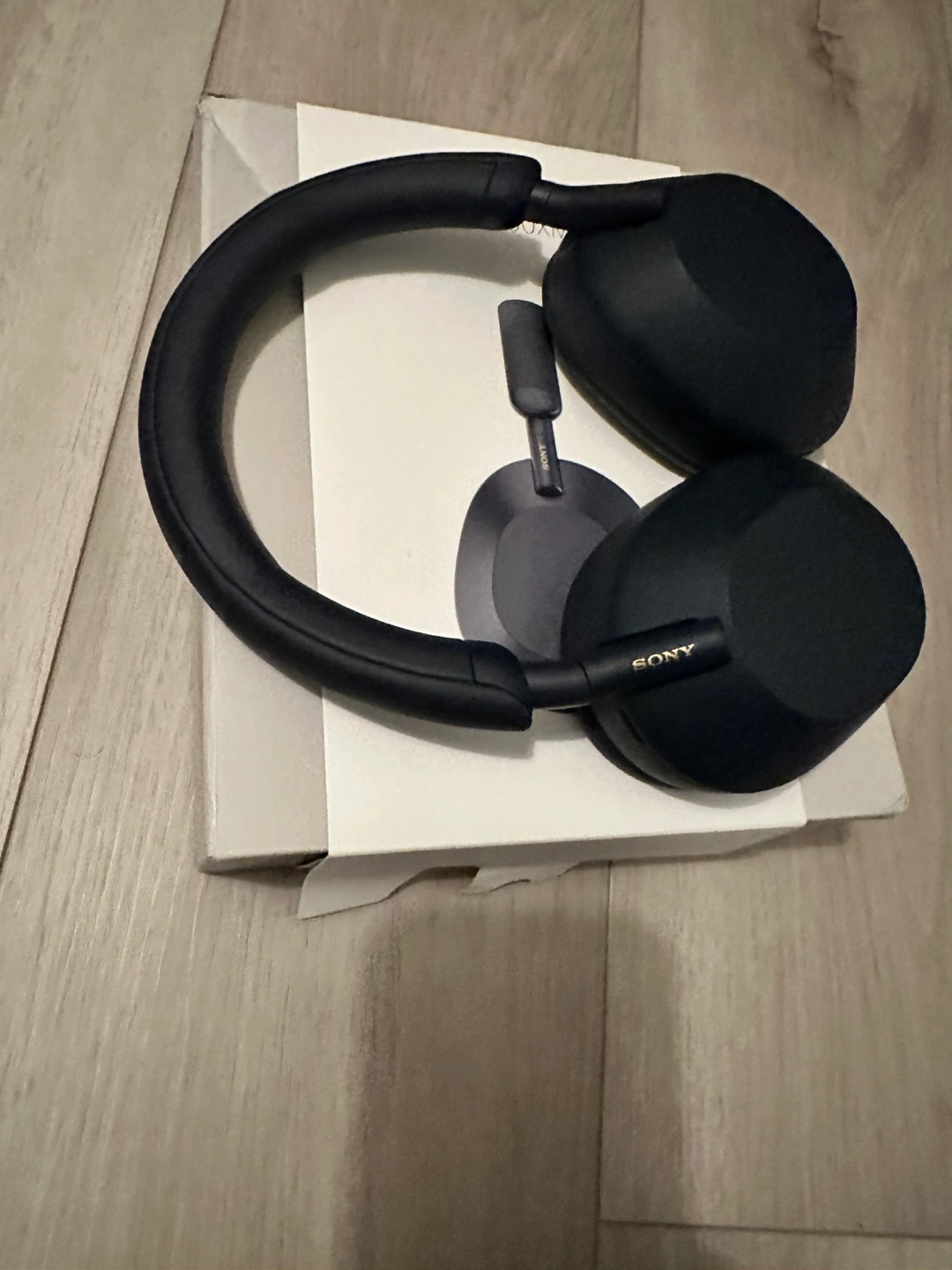 23Selling a pair of Sony WH-1000XM5 wireless noise cancelling headphones in black. They come with the original box! Great for listening to music on the go or at home.