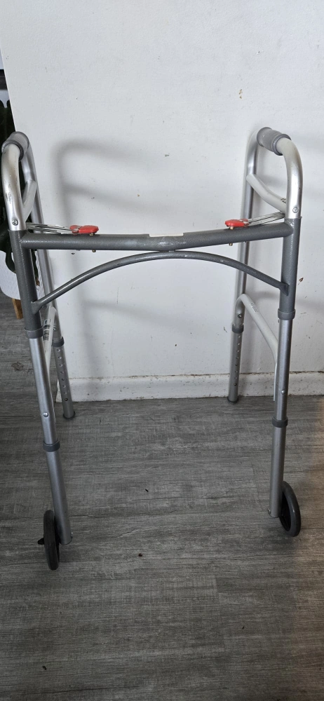 Selling 2 wheeled Walkers. It has wheels on the front for easy movement. The walker folds up for convenient storage and transport.
