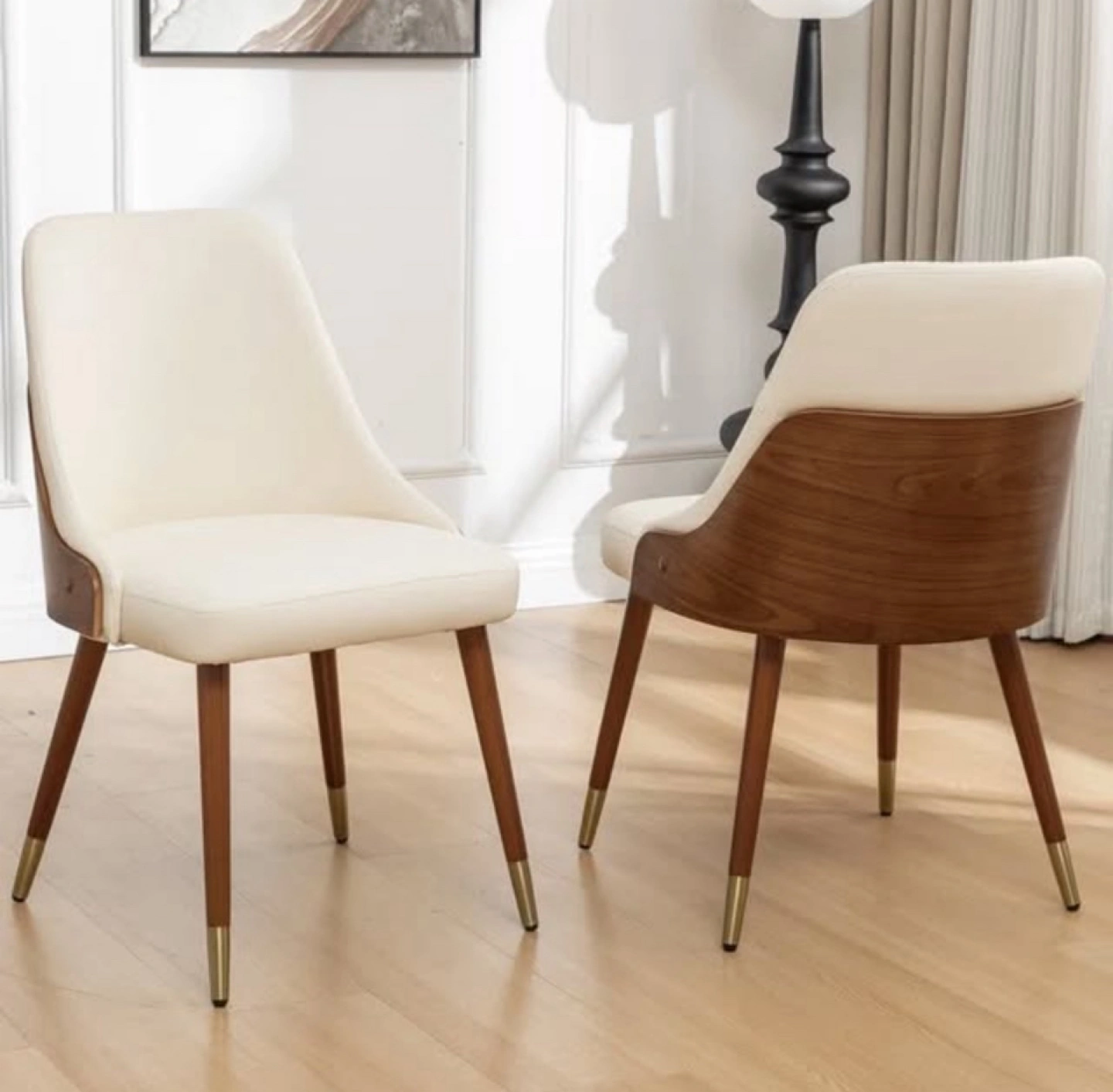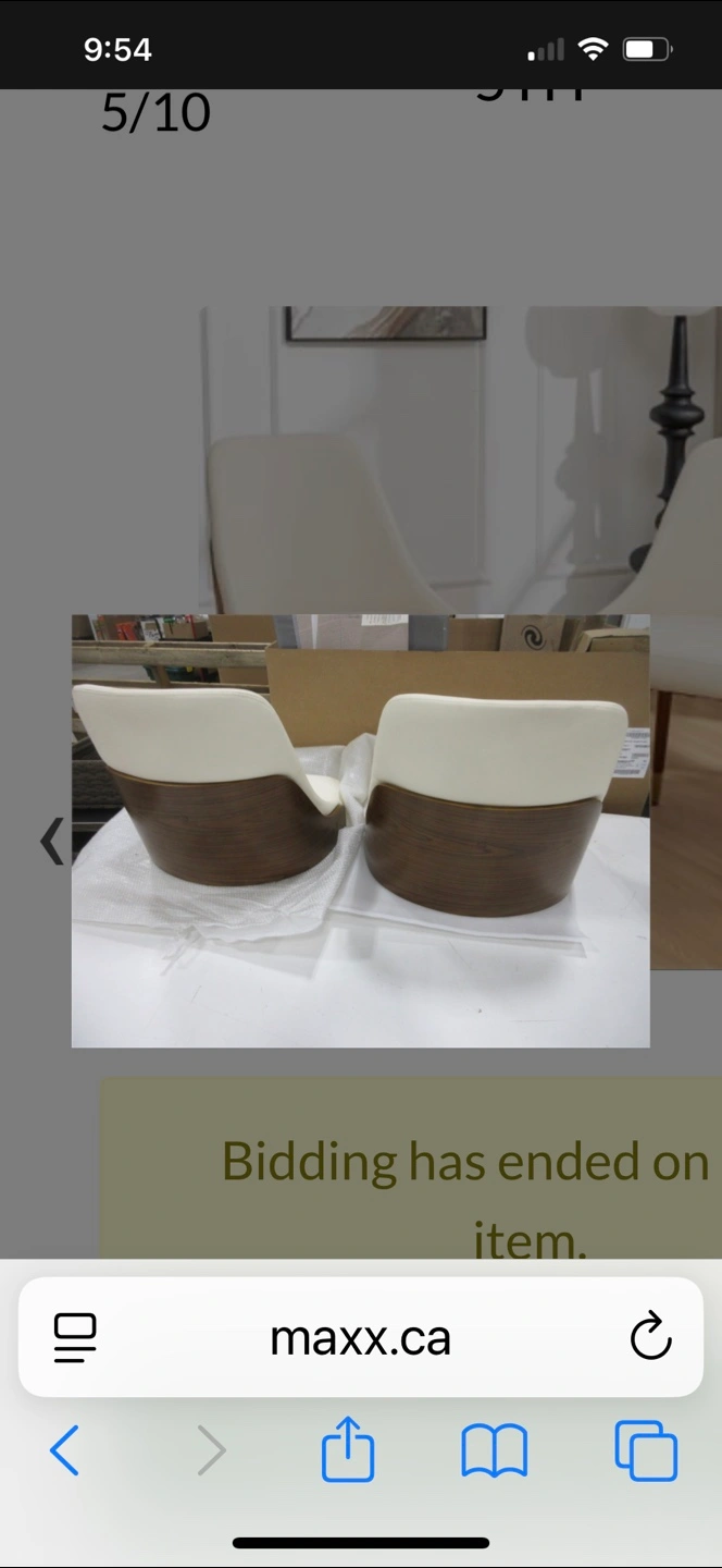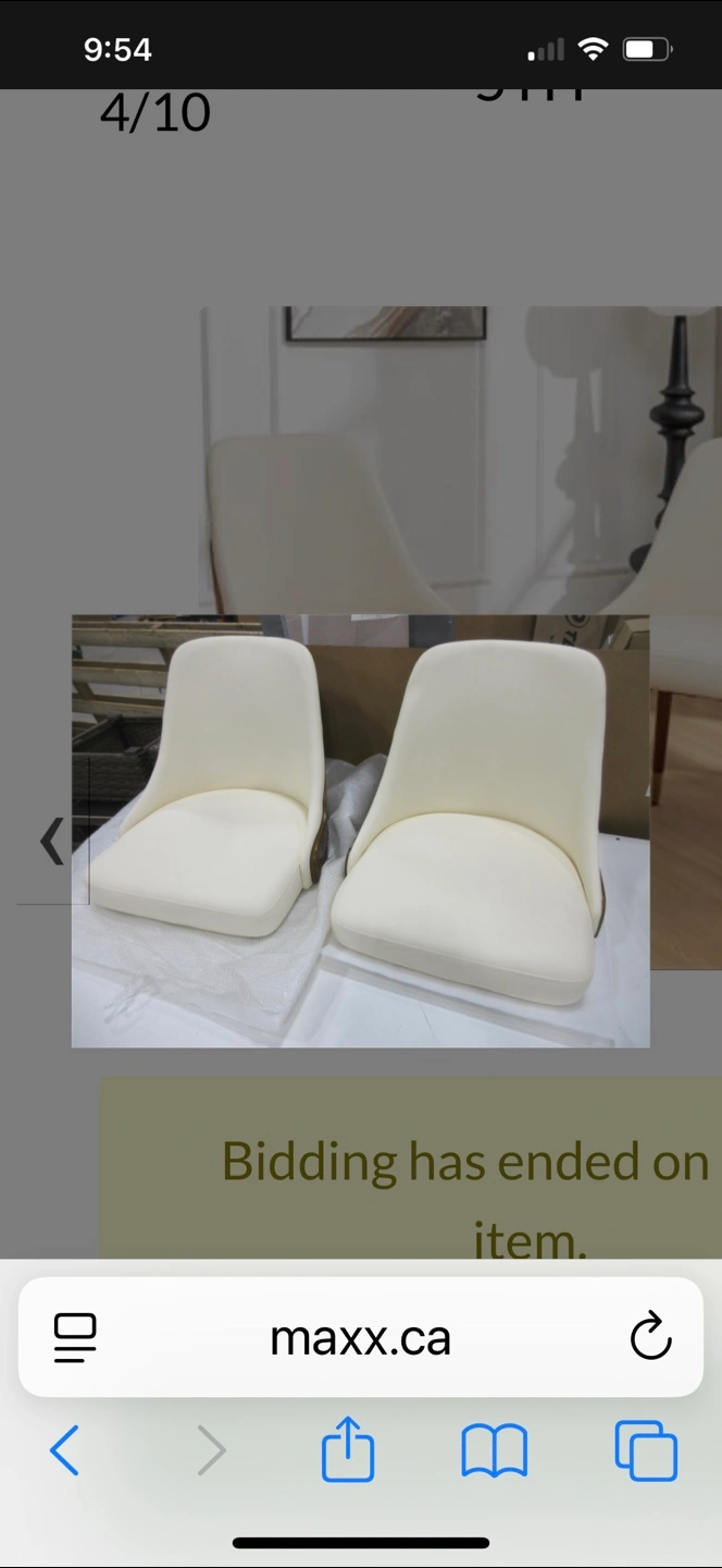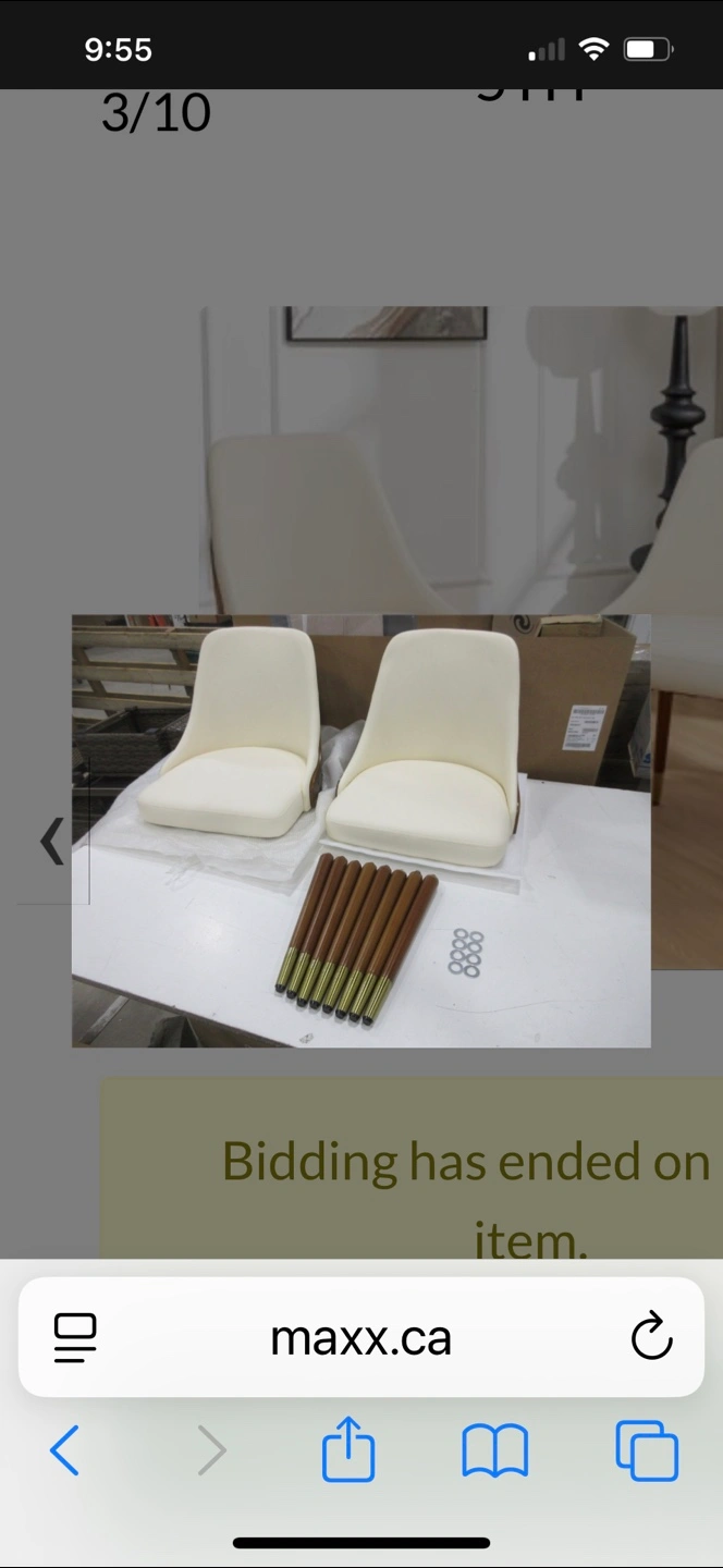 Selling a set of two dining chairs. They have a cream-coloured seat and a wood-finished back. The legs are also wood with gold accents at the bottom. Perfect for adding a touch of elegance to your dining space Jahmai Upholstered Parsons Chair (Set of 2). Original price on Wayfair after discount is $439.99 see the link below: https://www.wayfair.ca/furniture/pdp/george-oliver-jahmai-upholstered-parsons-chair-set-of-2-c010659373.html?piid=1619214289