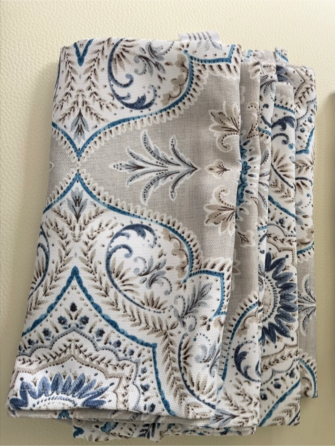 135‼️ d o w n s i z i n g ‼️ 📍 pick up near Greenbank / Hunt Club 💸 priced to sell quickly Set of 4 - Alex and Zoe dinner napkins! New without tags. Lovely blue and beige pattern. 100% polyester and machine washable. 🚫 clean, smoke-free home / no pet hair Thank you for your interest! Merci de votre intérêt !