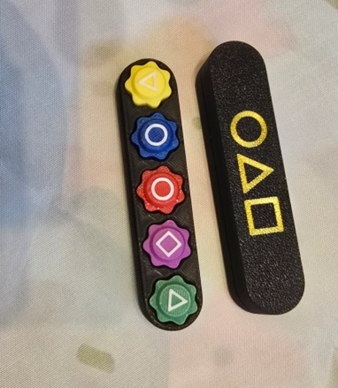 Get ready for your own Squid Game Dalgona candy challenge! This set includes the tools you need to make and play the game. It features the iconic shapes from the show: circle, triangle, square, and more!