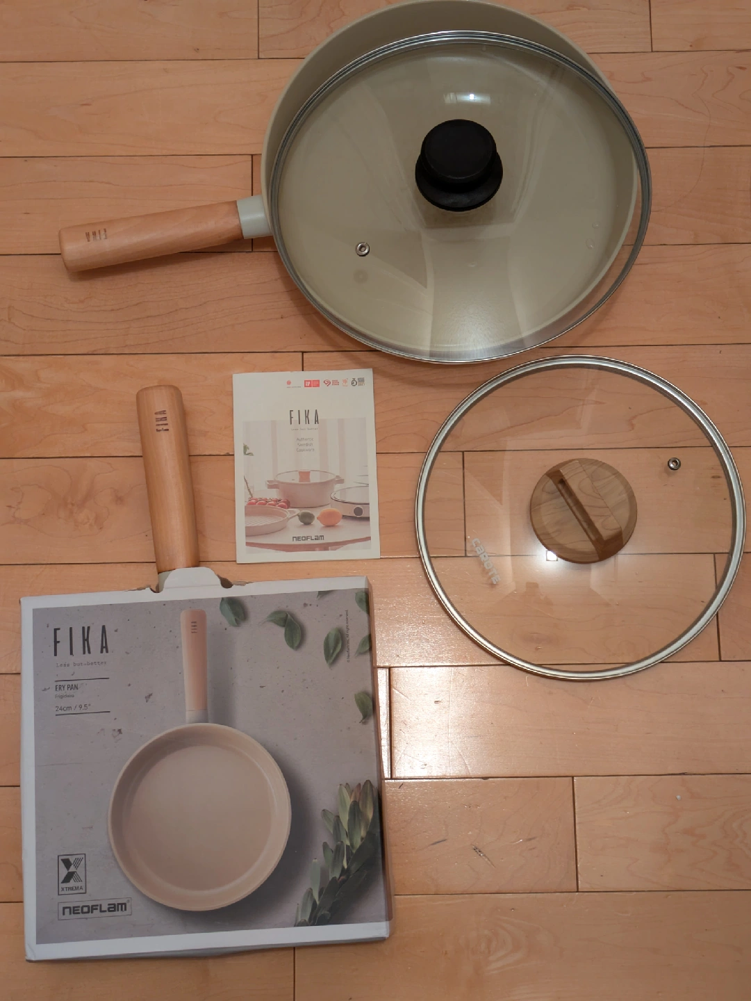 143NEOFLAM FIKA fry pan in excellent condition. Product of Korea, designed in modern Swedish style. Lid was not originally in it, but I have a perfect size. Bigger pan will be included along with lid as well.