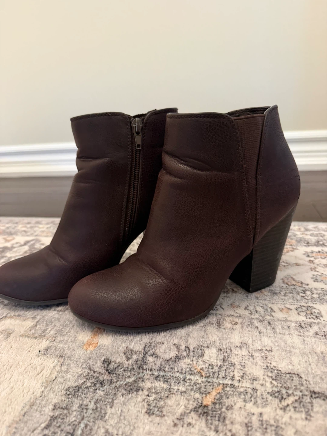 Buy & SellAnkle Boots - Women's Size 8Ankle Boots - Women's Size 8$14Brown/maroon in colour, ankle boots with a side zipper and block heel. They're a size 8 M US.BrandPUNCHWHERE TO MEETCheck LocationView MapSELLERJennWaterdown100 reviews0 chats·1 favorites·8 viewsSEND CHAT TO SELLERHi Jenn! I’m interested in your listing.Hi Jenn! I’m interested in your listing.Get the Karrot app to chatSign In to chat
