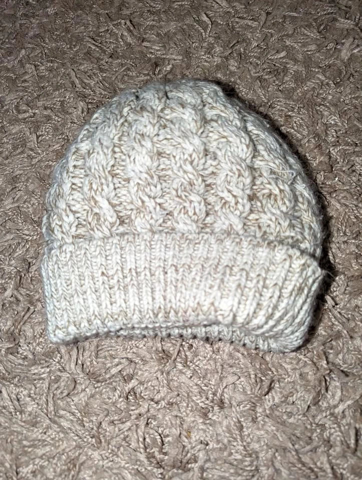 Beige Cable Knit Hat – $3 Chunky knit hat with a fold-up brim. Classic and stylish for everyday wear.