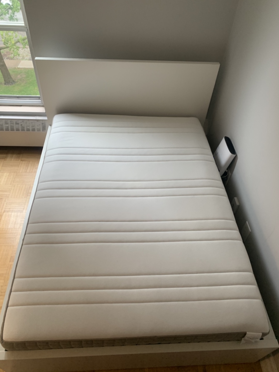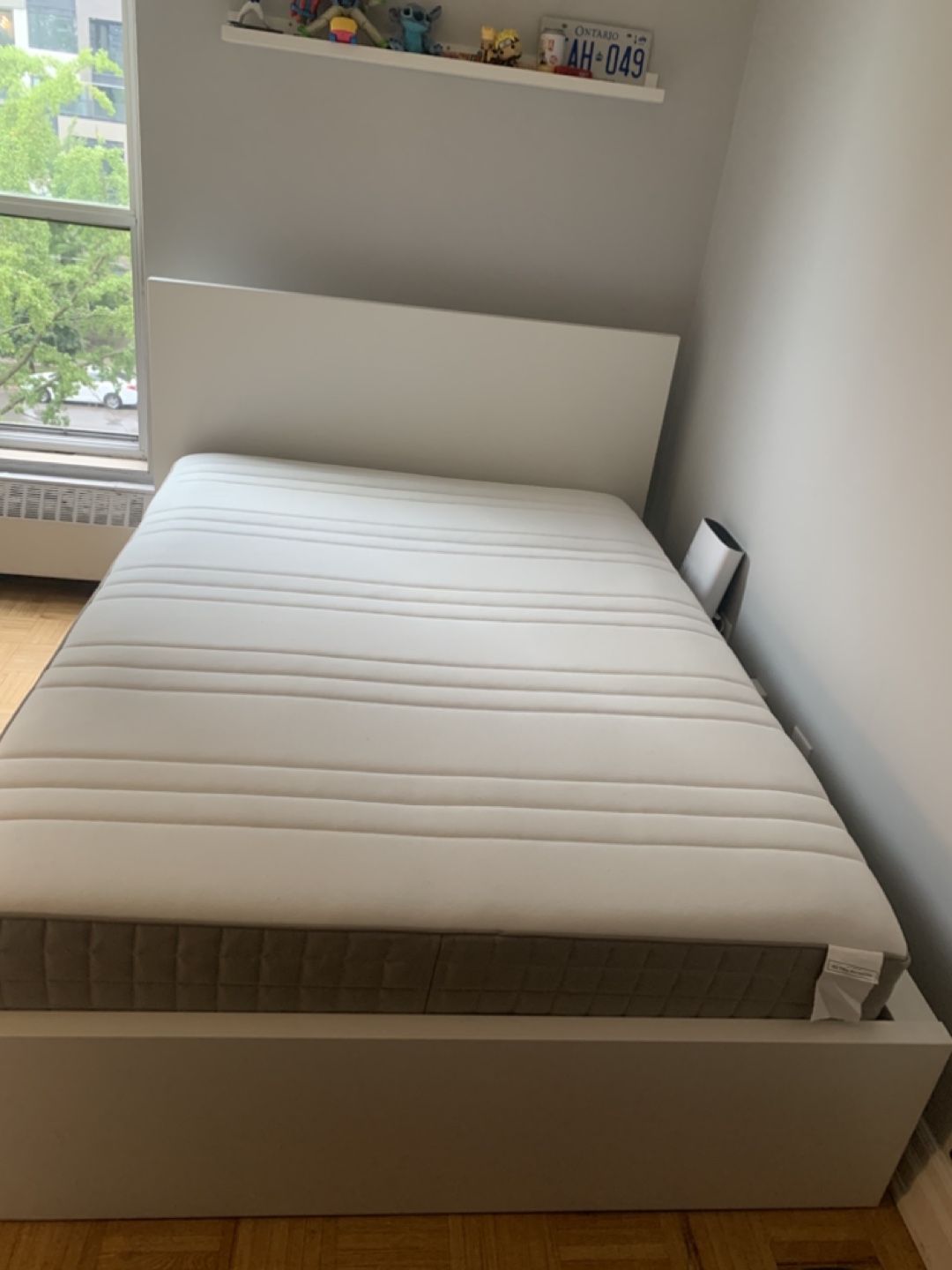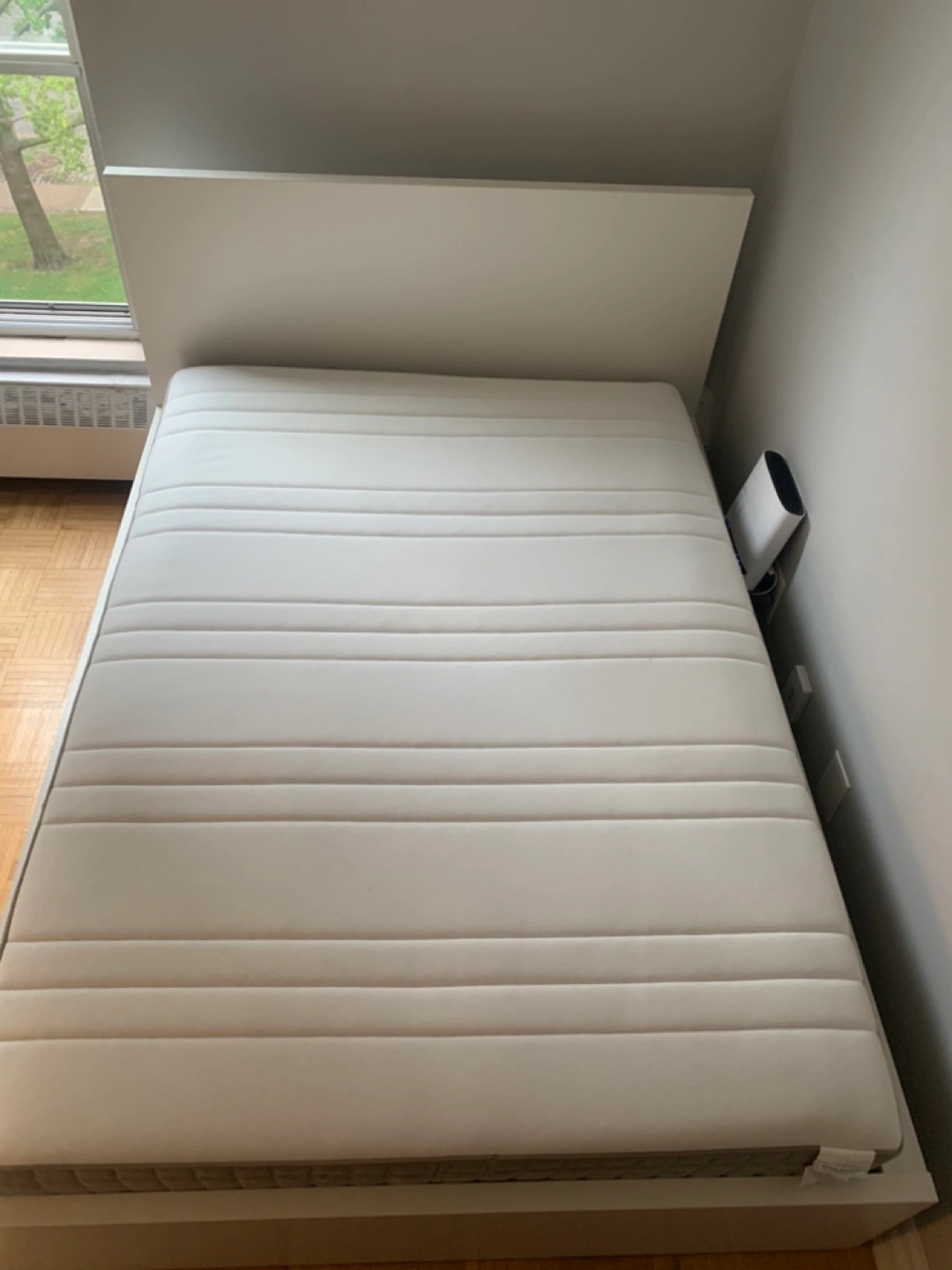 Selling a IKEA Malm bed frame in white, complete with Luröy slats with a mattress. It's sturdy and provides excellent support for a comfortable night's sleep. Originally bought for $279 and $199. It’s in the guest’s bedroom and it was used only twice. Price is negotiable.