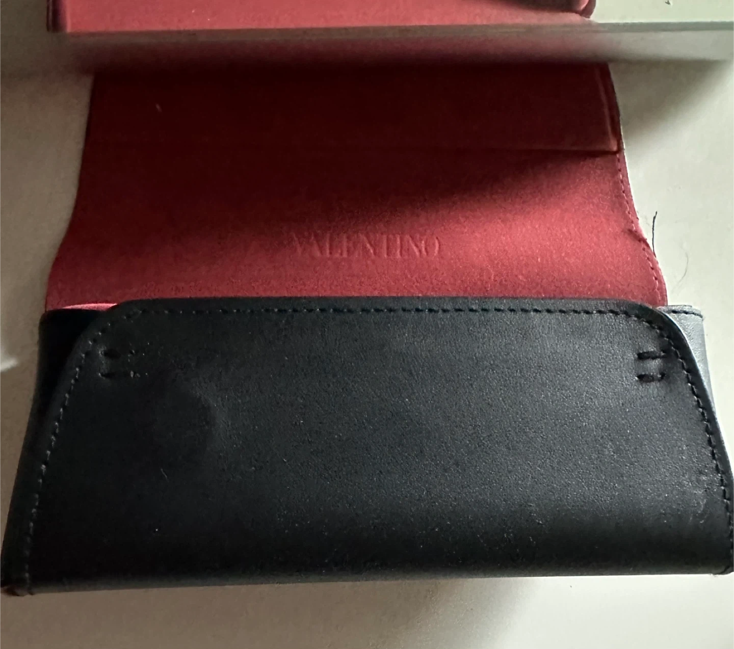 Selling a black leather eyeglasses case from Valentino. It's in good condition and ready to keep your glasses safe and scratch-free!