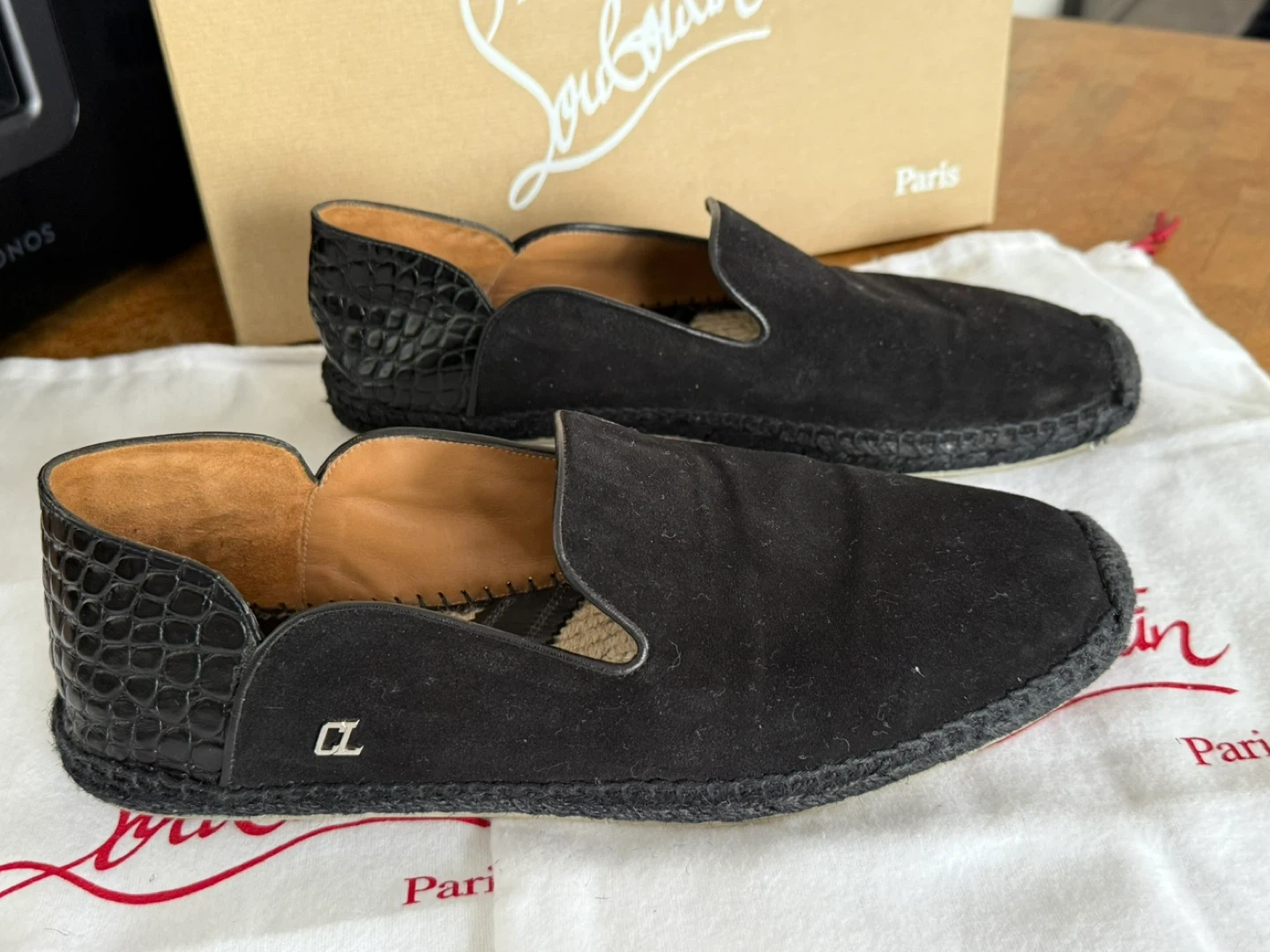 CHRISTIAN LOUBOUTIN Black Espadon Flat Crosta Clf Ali Black Men Authentic. Model 1210946 BK01 Size. US 10 (28 cm) 43 Very good condition 9/10 Original Box, Dust Bag Location Islington and Bloor