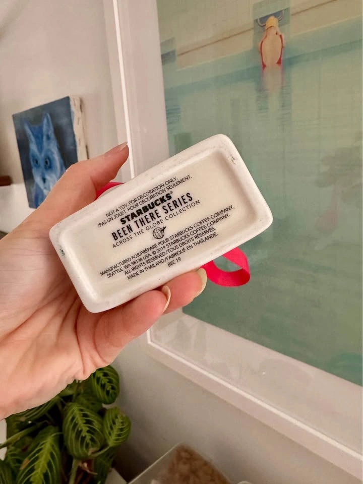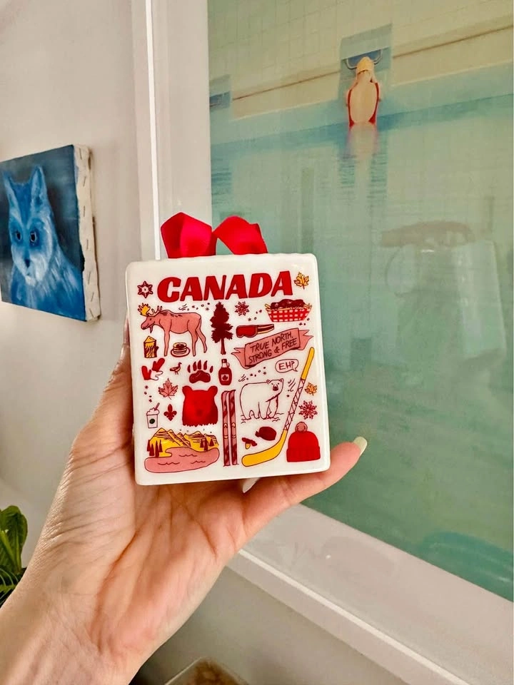 Celebrate Canadian Pride (True North, Strong and Free) and jet-set travels with this ornament from the Starbucks Been There Series. This ceramic tote ornament features scenes of Canada's landmarks and destinations and comes in with red straps.