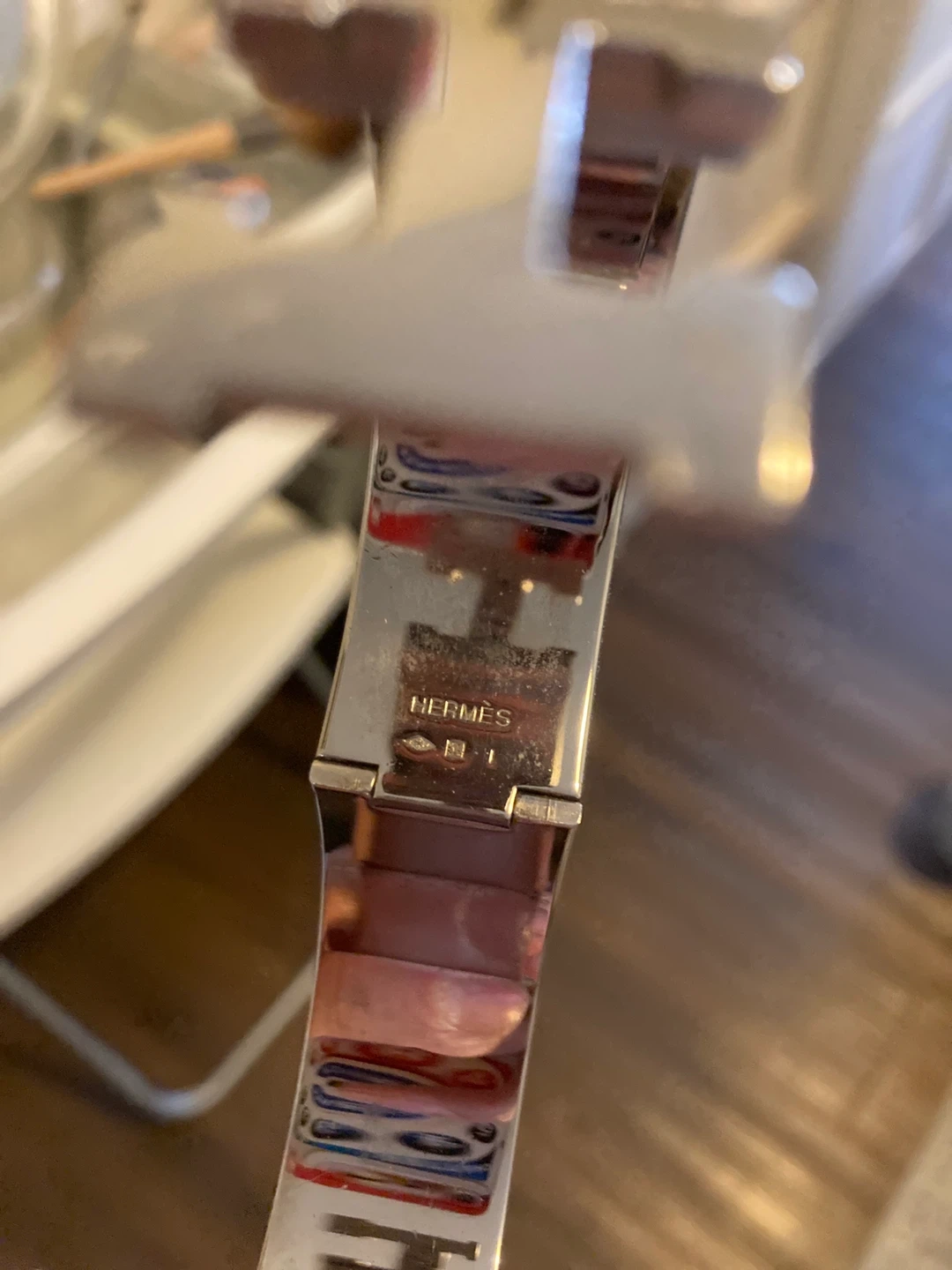 Hermes Clic Clac bracelet, silver, and hermes orange, just like the picture. It's the small circumference. I don't have the box, but the bracelet is in perfect condition.