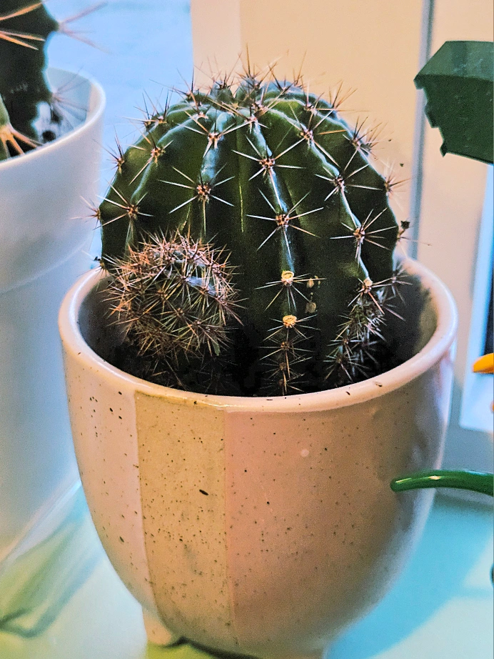 A cute little cactus in a pot, perfect for adding a touch of green to your home or office space! It's in great condition and ready to find a new home.