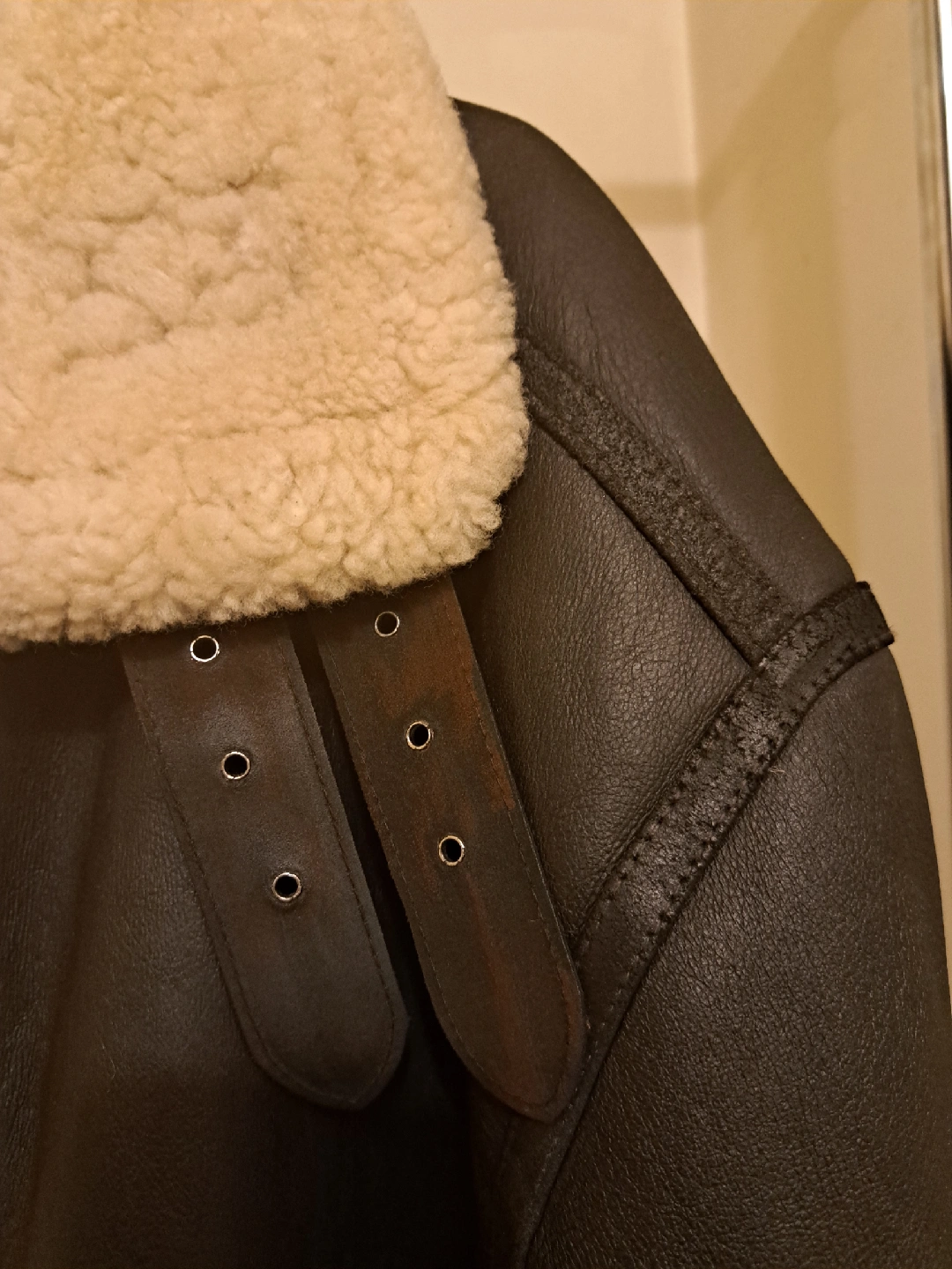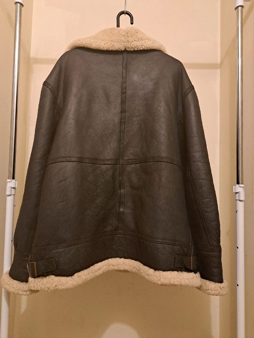 Selling a cozy shearling leather bomber jacket. It's a stylish and warm jacket, perfect for the colder months. The jacket features a soft shearling lining and a durable leather exterior. It's in excellent condition and ready for a new home!