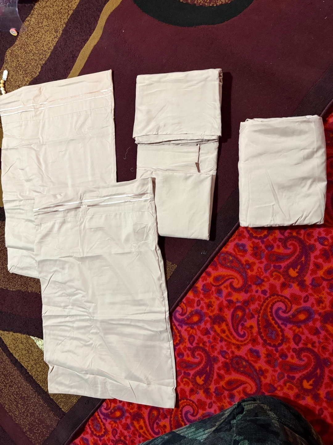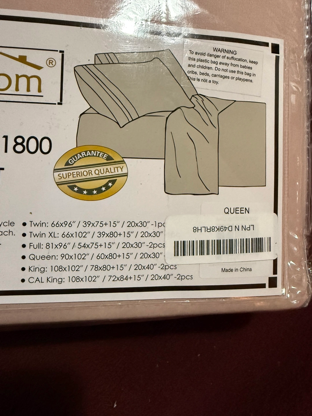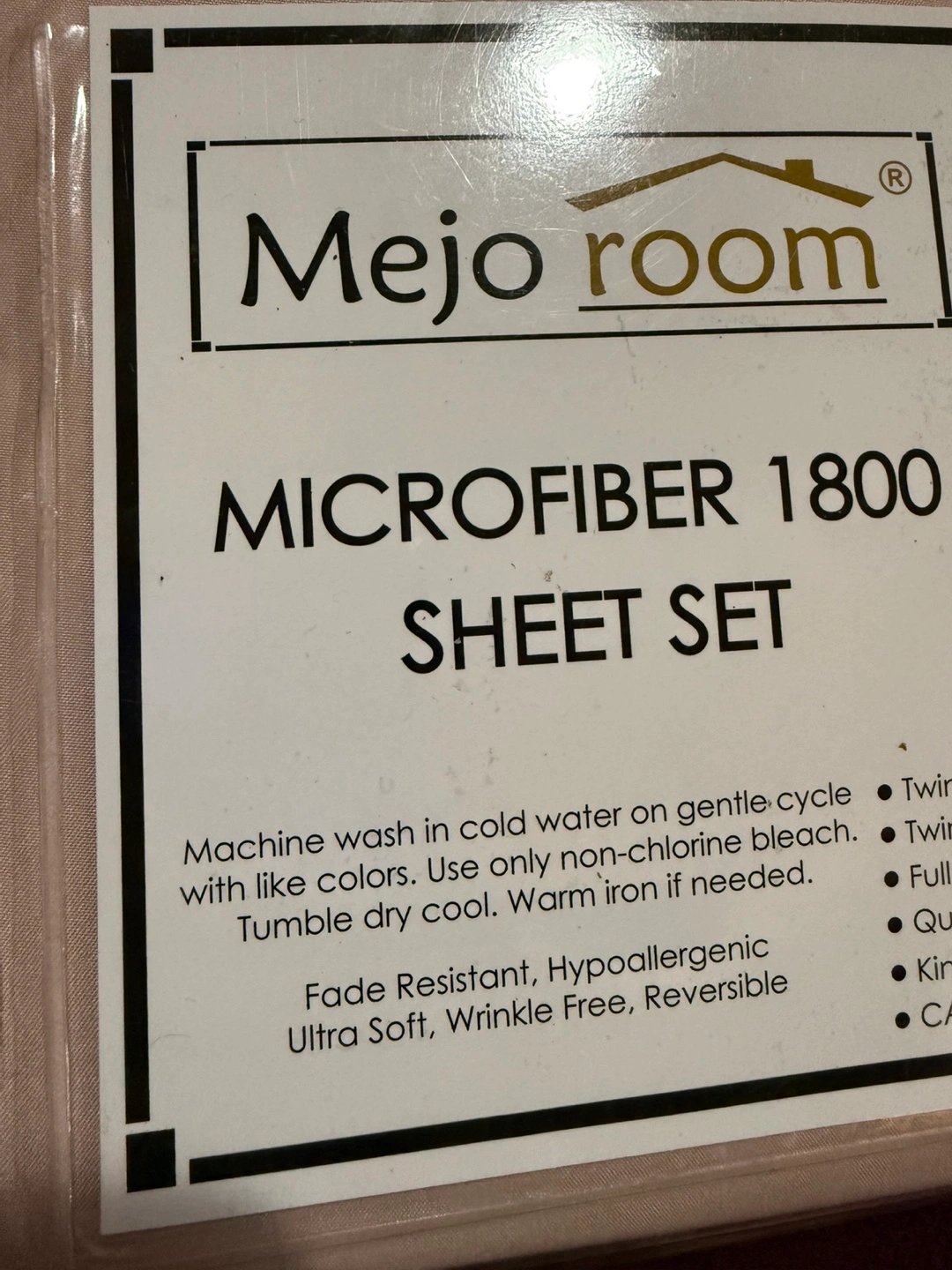 Selling a Mejo Room Microfiber 1800 sheet set in queen size! It's a lovely, soft beige colour. Includes a fitted sheet, a flat sheet, and two pillowcases. It's fade resistant, hypoallergenic, wrinkle-free, and reversible, so it's super easy to care for Smoke bug pet free home Pick up regent freshco