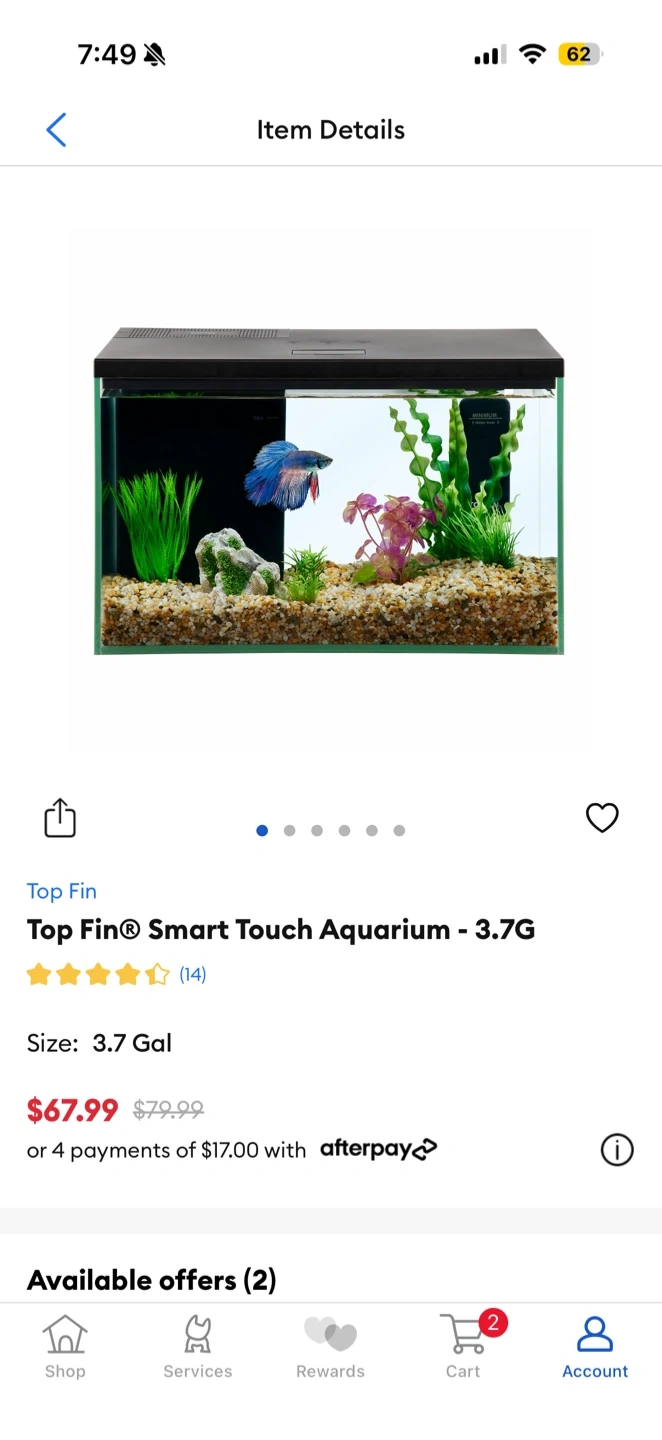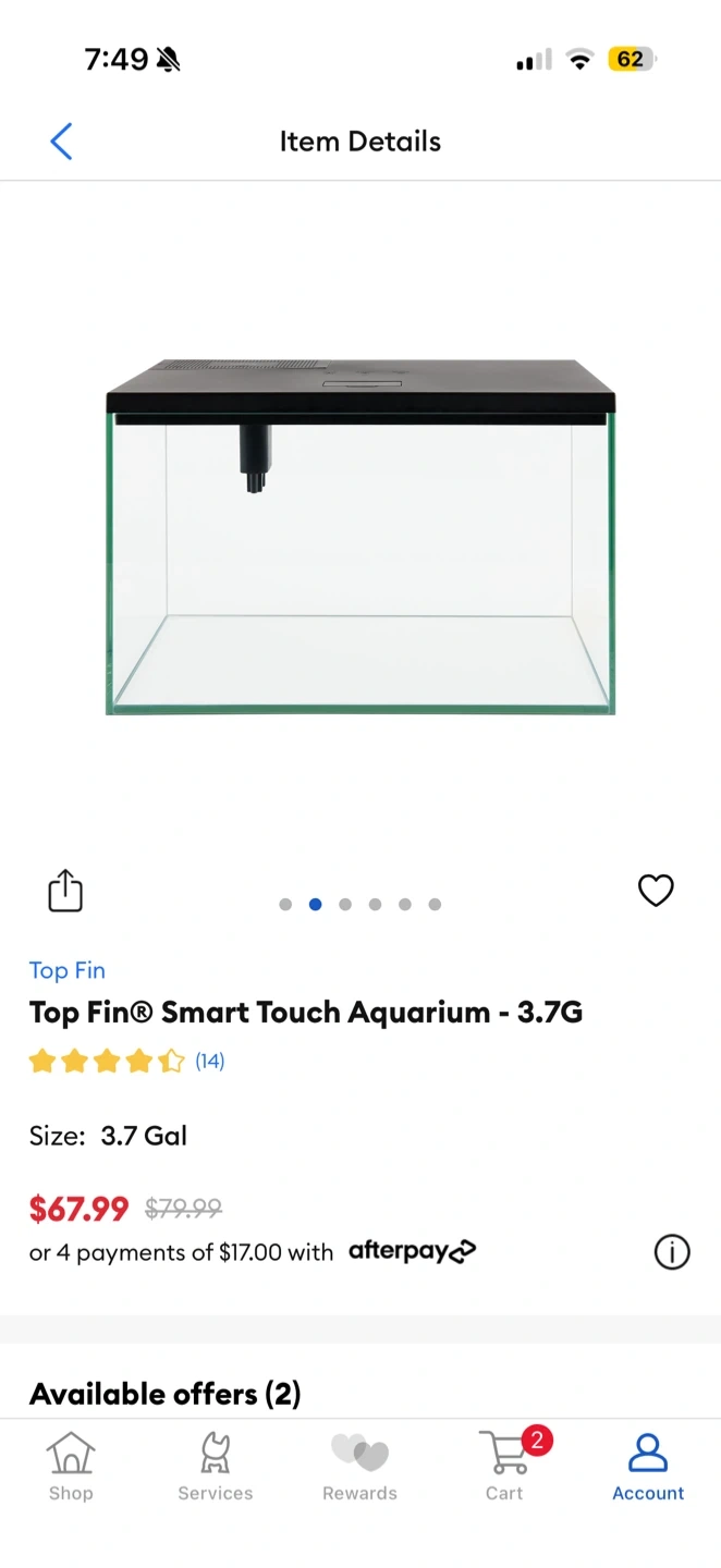 Buy & SellTop Fin Smart Touch Aquarium - 3.7 GallonTop Fin Smart Touch Aquarium - 3.7 Gallon$24This is a 3.7-gallon Top Fin Smart Touch Aquarium. It's made of glass and comes with a built-in filter system. Upgraded to larger tank before used.ConditionNewWHERE TO MEETLeducView MapSELLERverifiedAmber PWest Haven650 reviews1 chats·0 favorites·40 viewsSEND CHAT TO SELLERHi Amber P! I’m interested in your listing.Hi Amber P! I’m interested in your listing.Get the Karrot app to chatSign In to chat