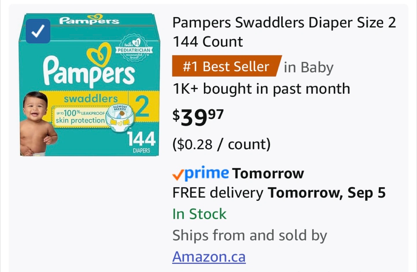 711Pampers Swaddlers, Size 2, 144 Count Brand new, sealed case of baby diapers — leftover after moving on to the next size. Pick up from a smoke free home near Browns Line & Lakeshore Boulevard in Etobicoke (Toronto/Mississauga).