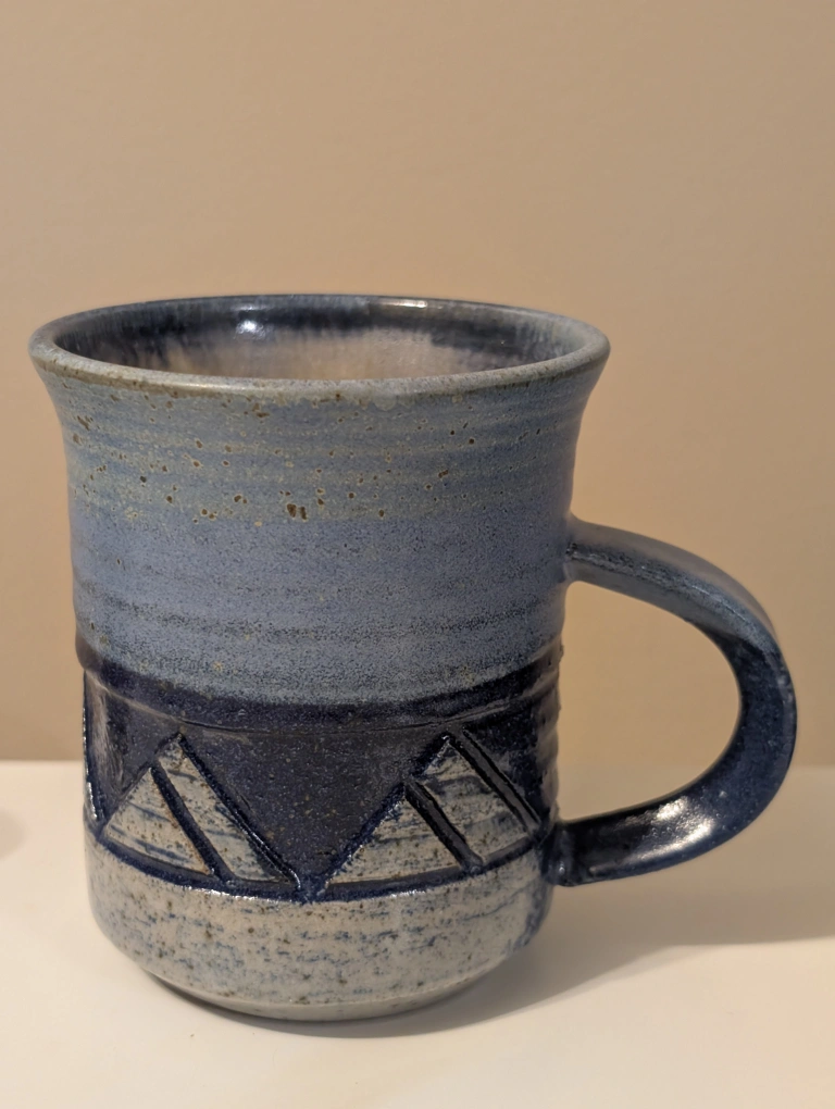 242Here's a beautiful handmade pottery mug by DIAKOW! It features a lovely blue glaze and a unique design. Perfect for enjoying your favourite hot beverage