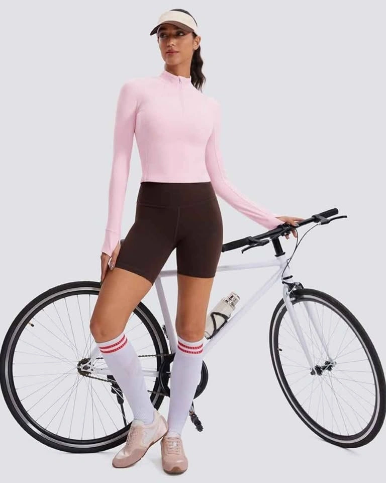 Women's Butterluxe Long Sleeve Workout Shirts Half Zip Pullover Sweatshirt Athletic Cropped Tops Running Shirt