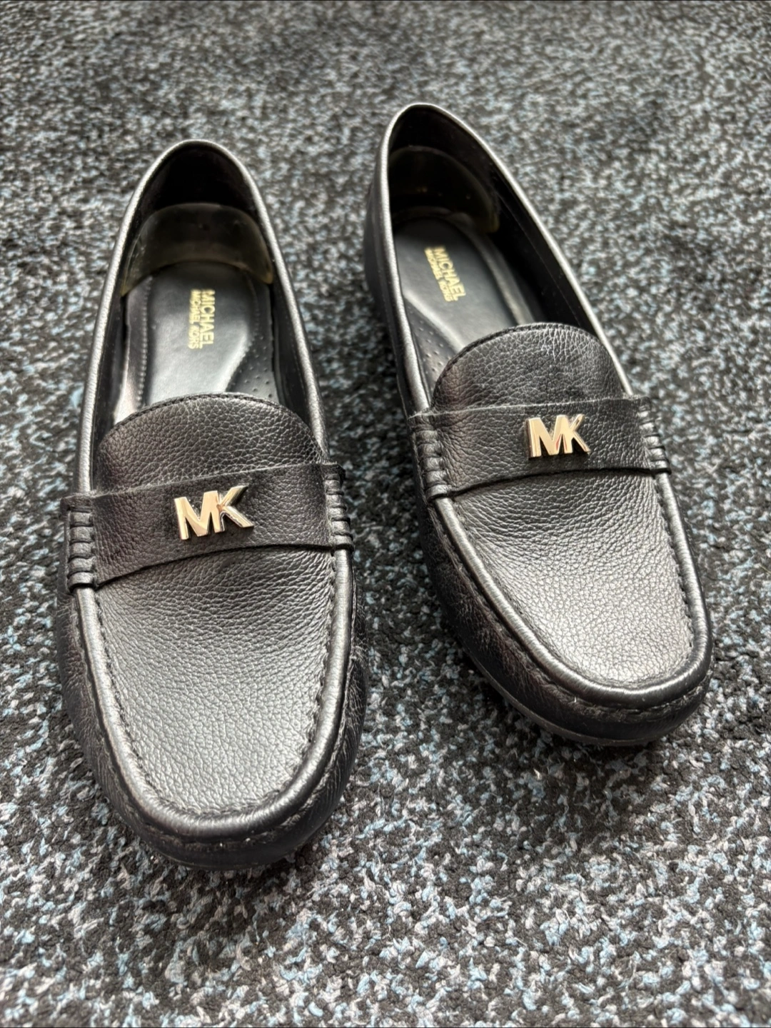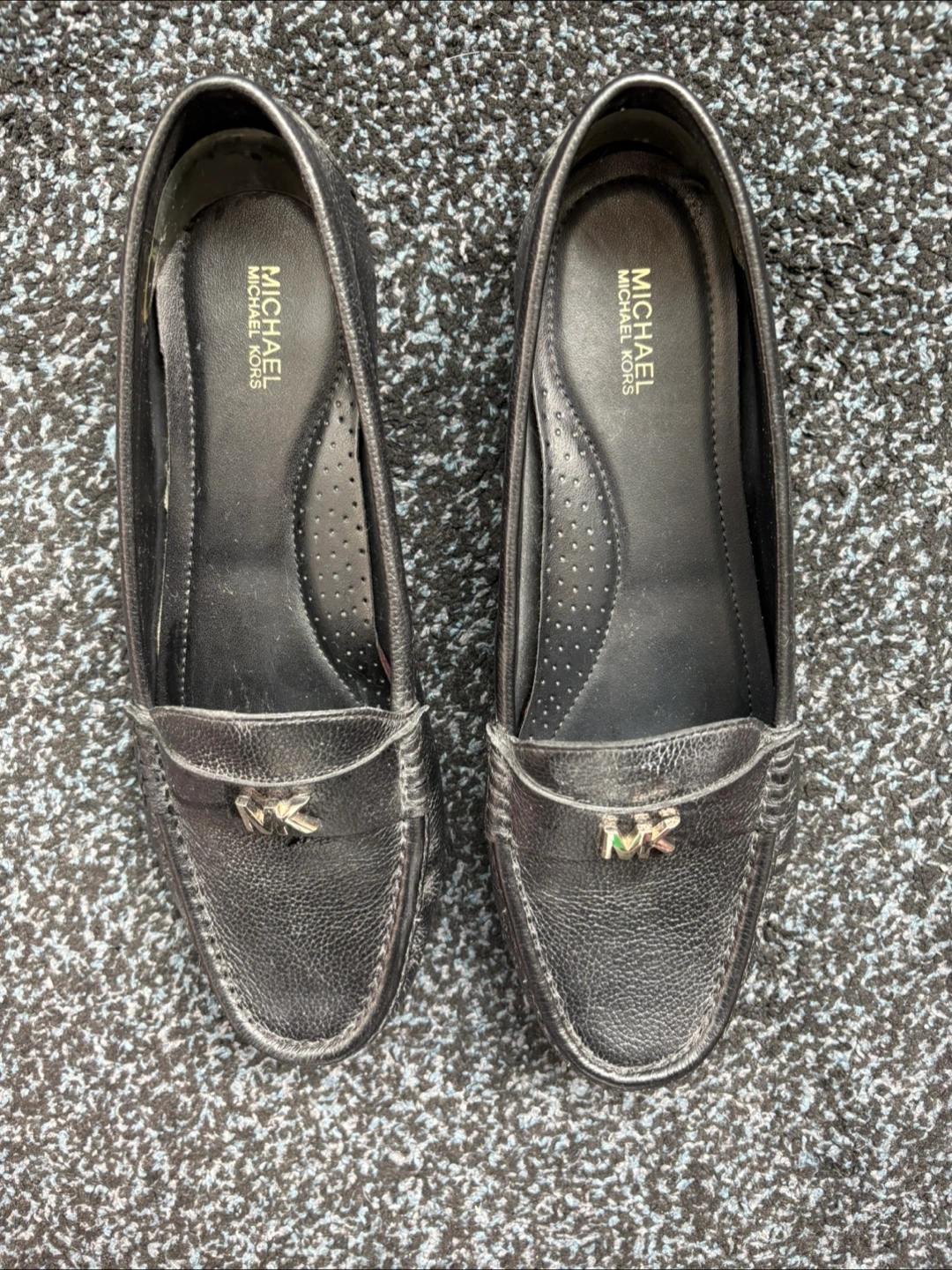 Selling a pair of Michael Kors loafers in black leather! They are in great condition and have the MK logo on the front. Perfect for everyday wear or dressing up an outfit!
