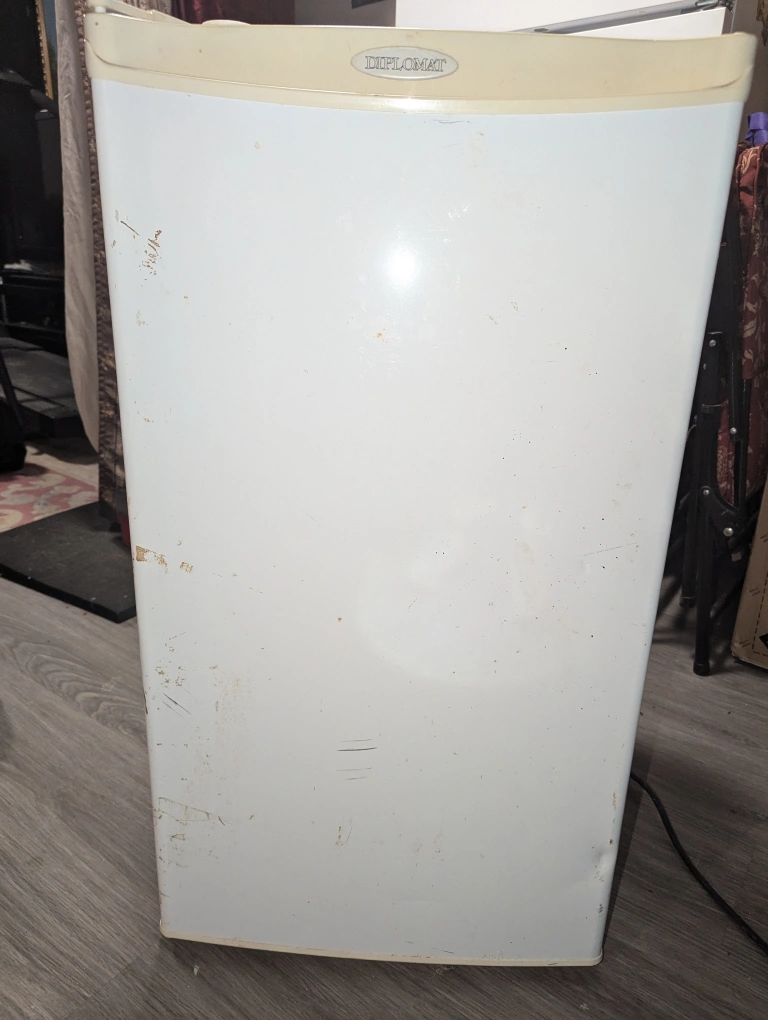 Selling a white Diplomat mini fridge. It's perfect for a dorm room, office, or small space! , it is still in go working condition and ready to keep your drinks and snacks cold