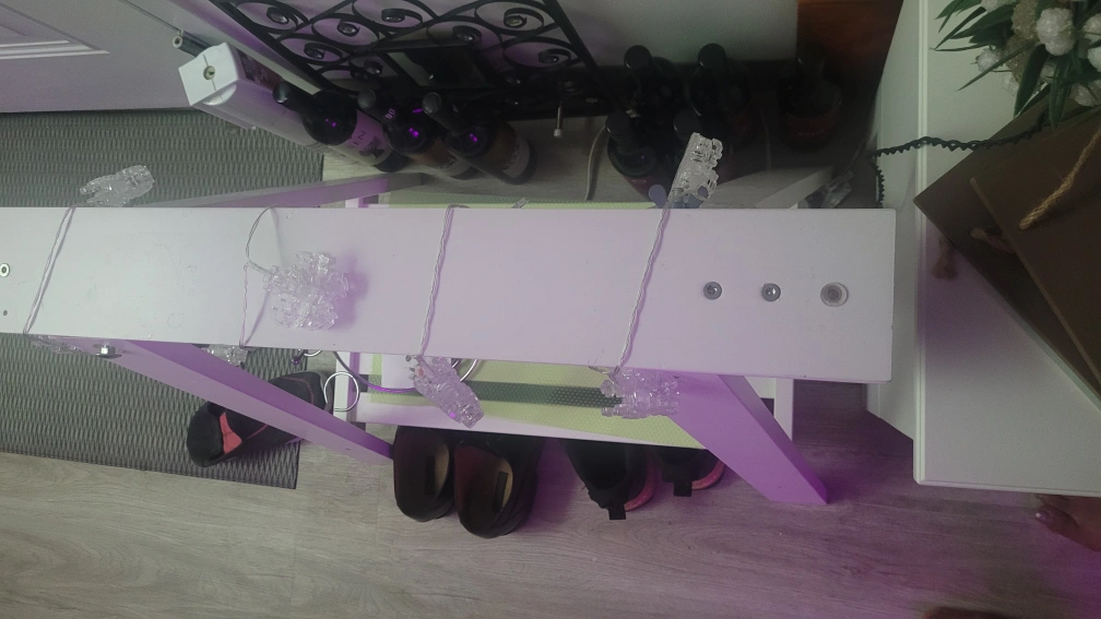 This is a can be - charming white wine rack that doubles as shoe storage! It's in great condition and ready to add a touch of elegance to your home. Perfect for small spaces or anyone who loves to stay organized. actually a base or leg to a table . a white shelf can be added at the top to add more space