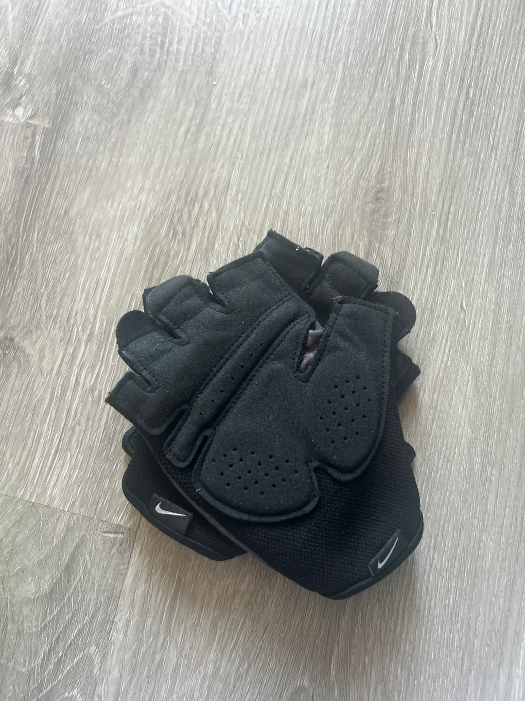 Selling a pair of Nike training gloves in good condition! One pair is black, and the other is grey, both with the Nike swoosh. Great for workouts or any activity where you need a bit of grip and protection for your hands