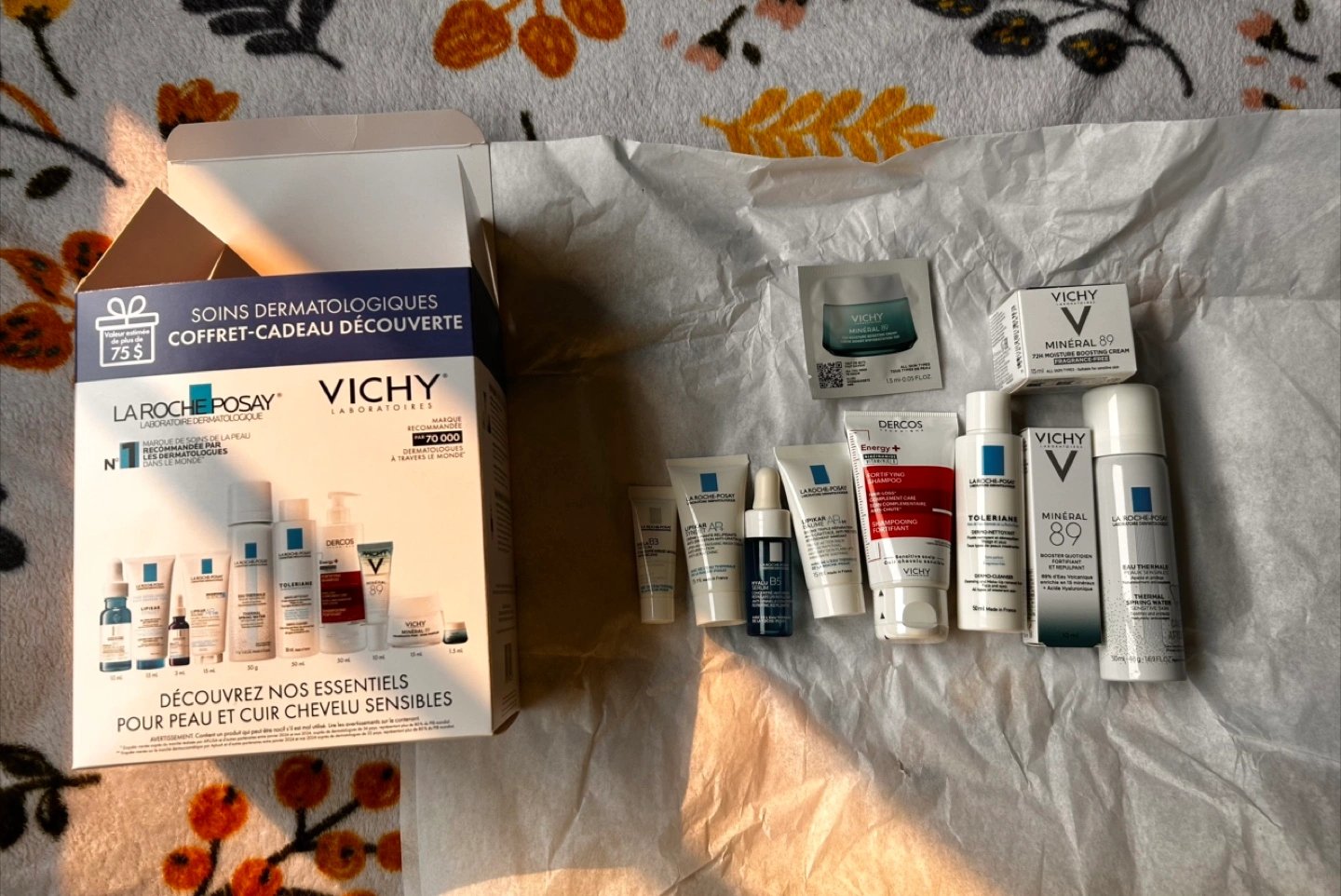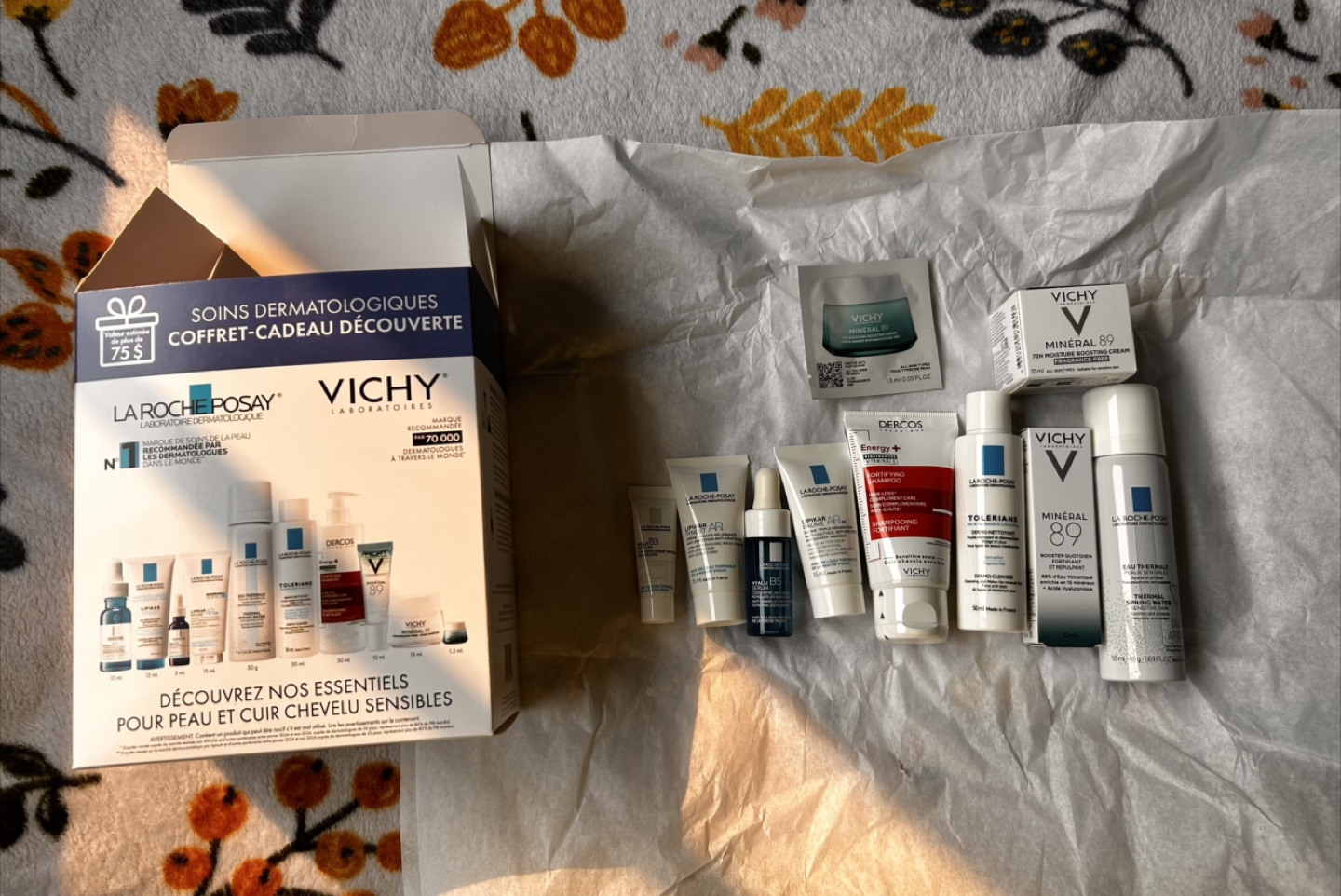 Selling a La Roche-Posay & Vichy Soins Dermatologiques Coffret-Cadeau Découverte skincare gift set! It includes a variety of skincare products for both face and body. The set contains 10 products, including Lipikar Syndet AP+, Lipikar Baume AP+M, Hyalu B5 Serum, Dermo-Cleanser/Dermo-Nettoyant, Thermal Water/Eau Thermale, Mela B3 Serum, Mineral 89 Serum, Fortifying Shampoo/Shampooing Fortifiant, Mineral 89 Daily Booster/Booster Quotidien, and Mineral 89 Light Cream/Crème Légère. This set is perfect for sensitive skin and hair!