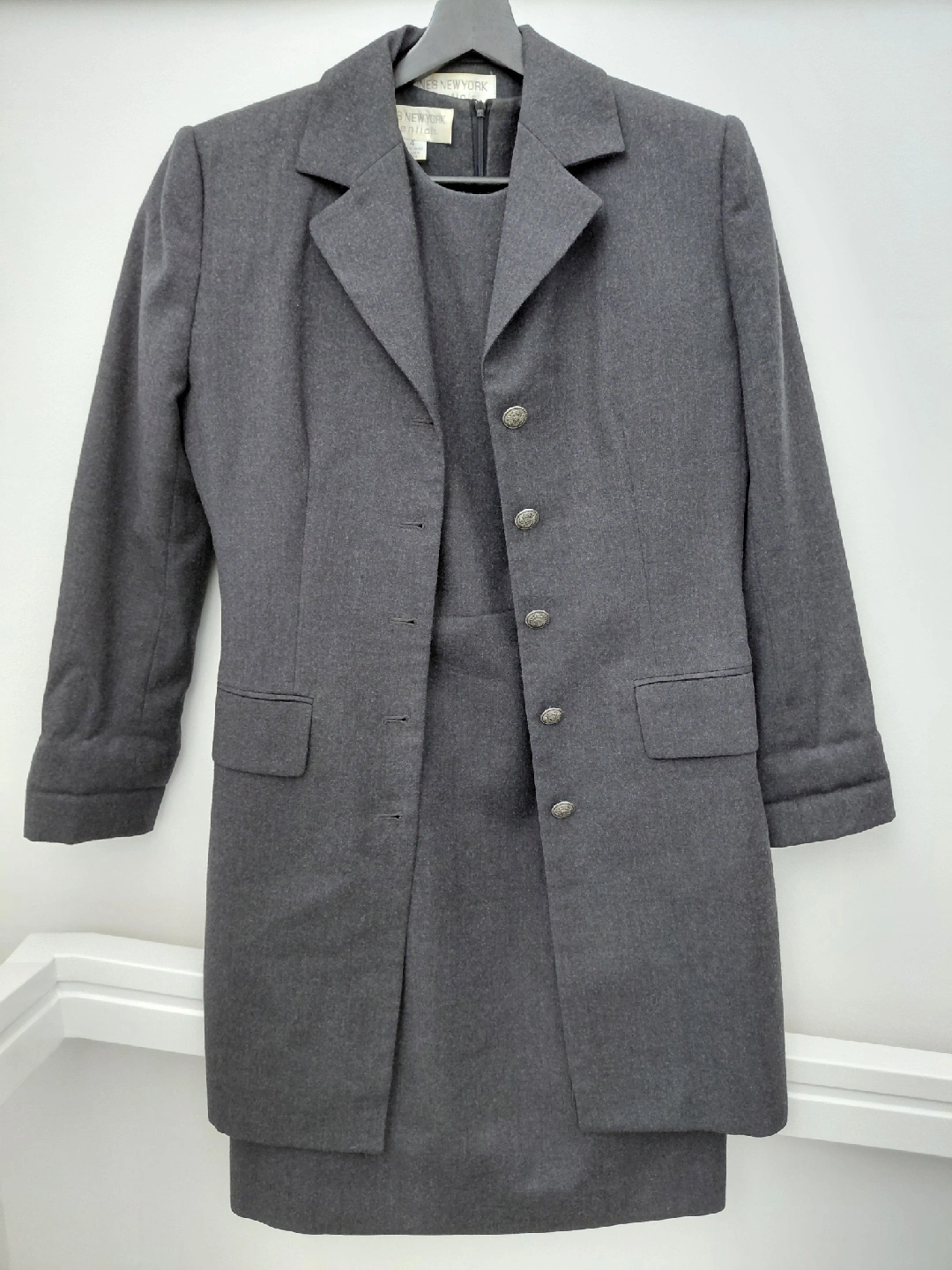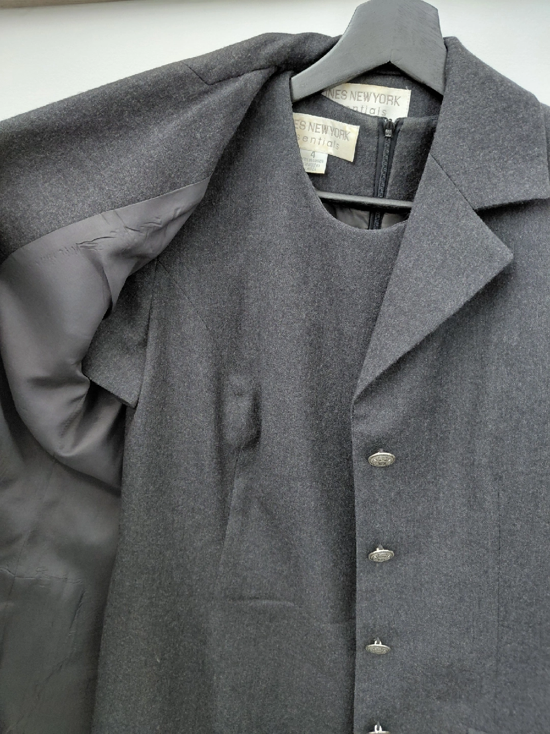 Selling a Jones New York Essentials dress and coat set in a dark grey colour.