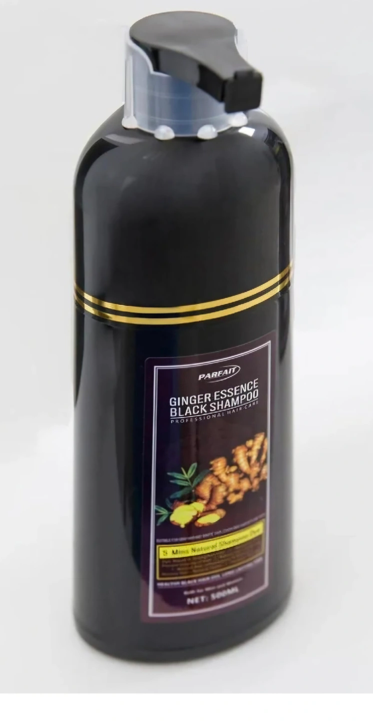 Enhance your hair's natural beauty with Parfait Ginger Essence Black Shampoo, a 500ml solution designed for both men and women. This shampoo revitalizes hair, covering gray strands in just 5 minutes with its natural dye.