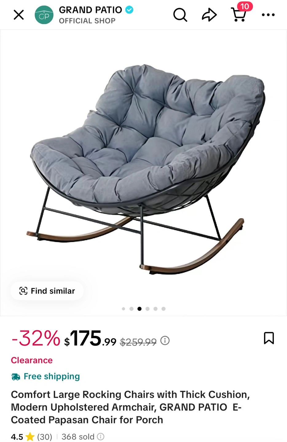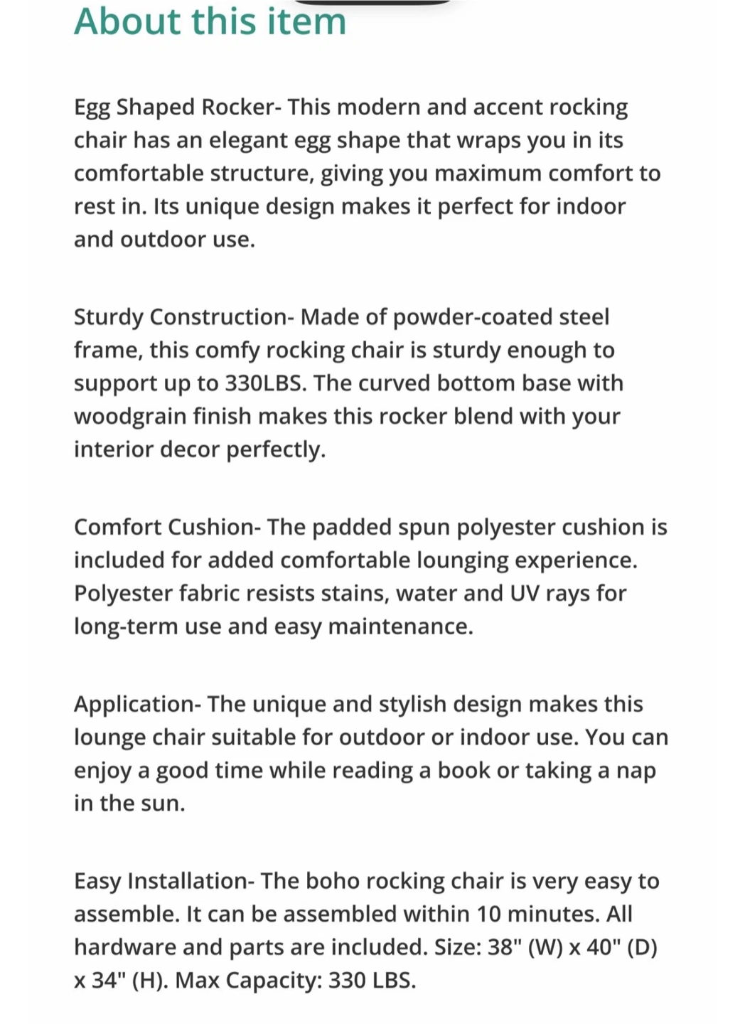 Originally priced at $175.99, this chair is perfect for indoor or outdoor use. The egg-shaped rocker has a sturdy construction and provides maximum comfort for lounging