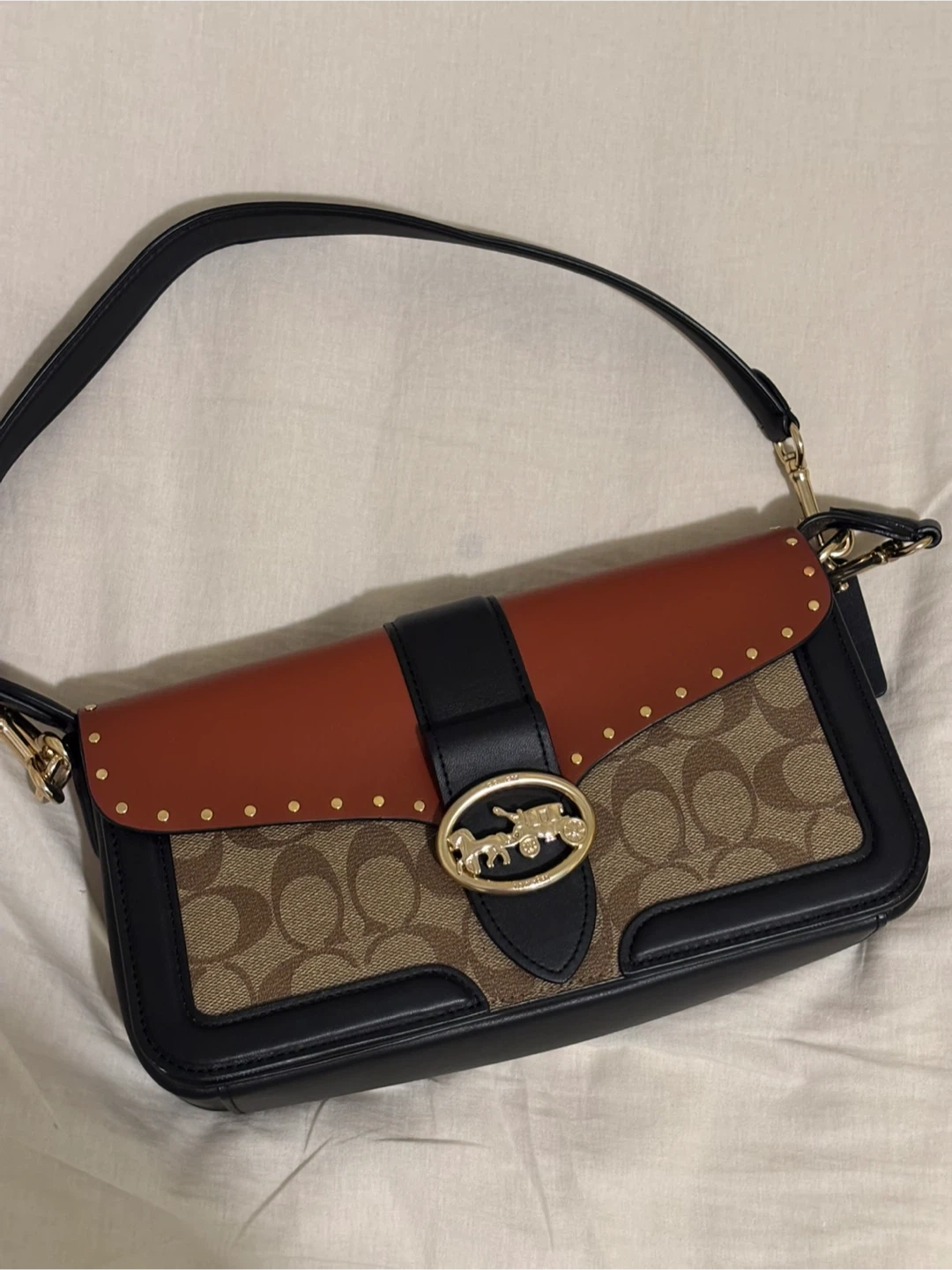 Coach Georgie Shoulder Bag In Colorblock Signature Canvas With Rivets 5605