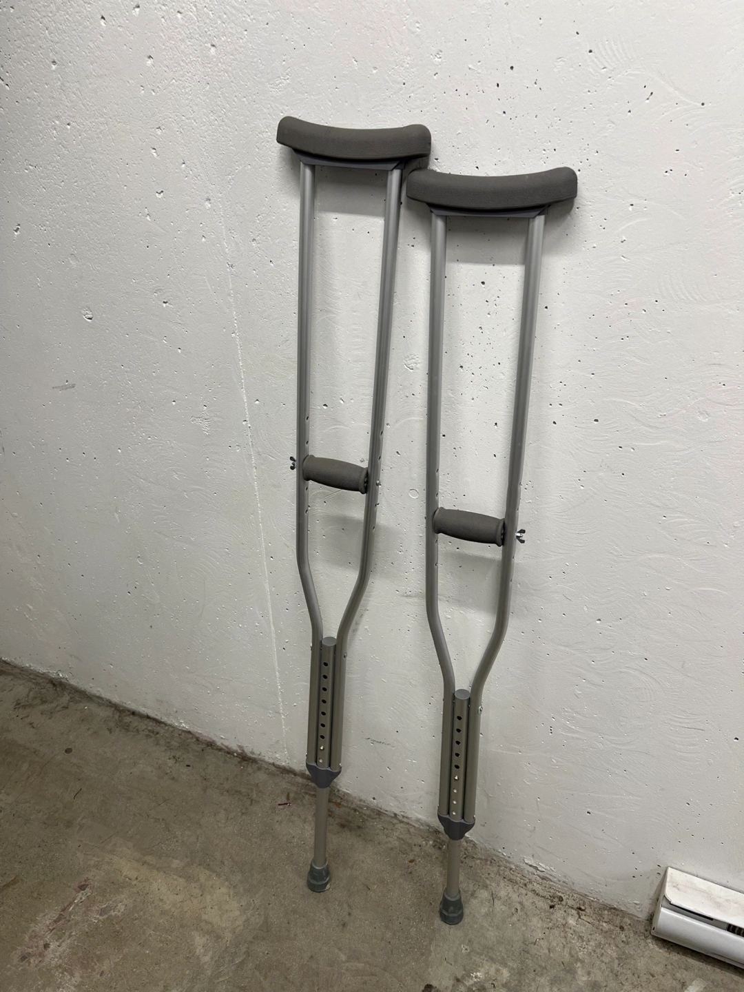 Selling a pair of adjustable aluminum crutches. They are in good conditions and ready to assist someone in need. They are lightweight and have adjustable height settings for a comfortable fit. Perfect for temporary mobility assistance!
