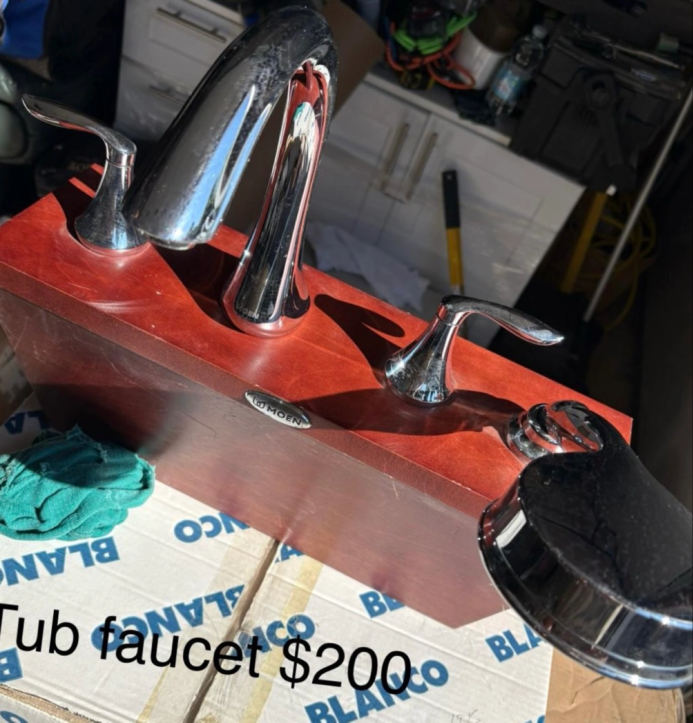 Selling a New display model Moen Eva Roman Tub Faucet with Handheld. The model number is 9796 and it comes in chrome. It's a stylish addition to any bathroom!
