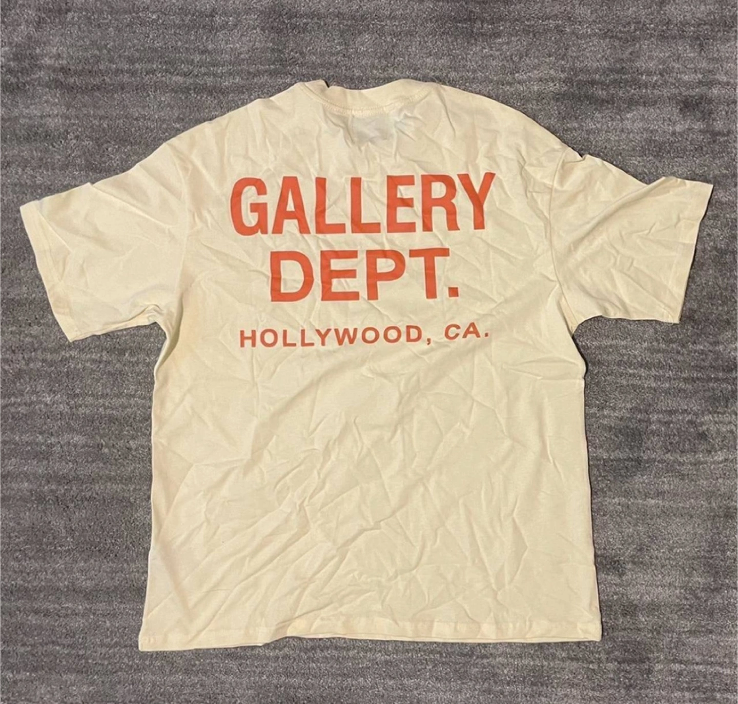 Gallery Dept. Cream Short Sleeve T-Shirt Hollywood CA Logo