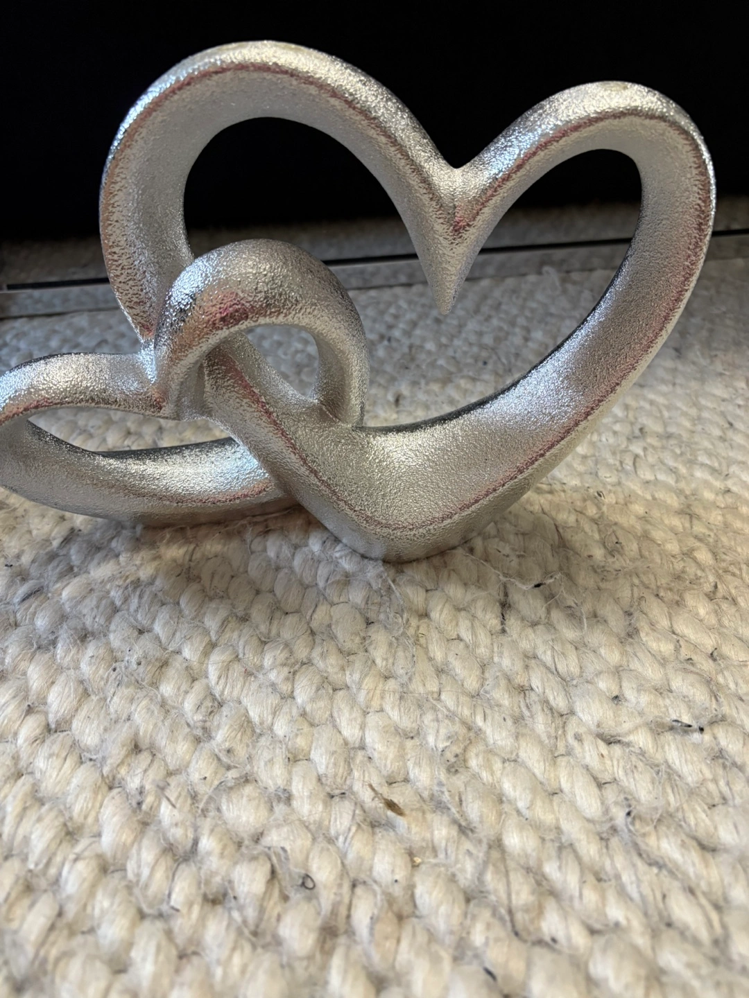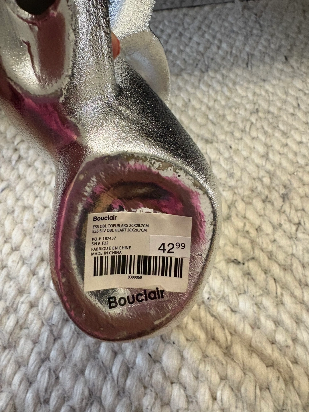 Add a touch of love to your home decor with this Bouclair silver heart sculpture! It's a beautiful piece that can be placed on a shelf, table, or mantel. Originally bought for $42.99, this decorative sculpture is in great condition and ready to find a new home