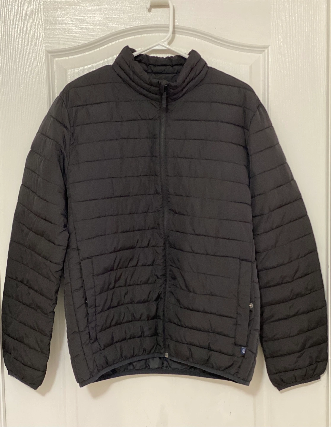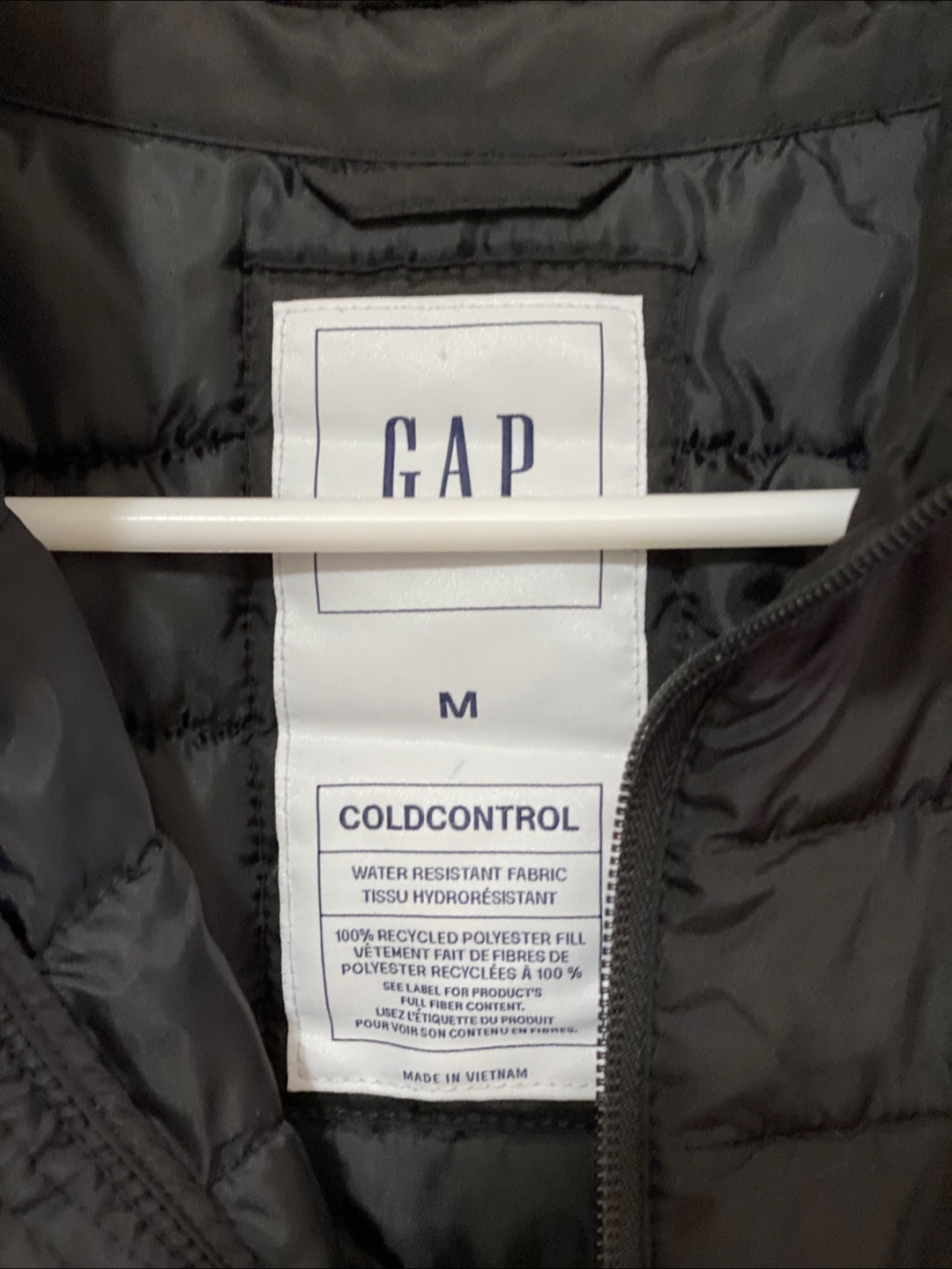 Selling a Gap puffer jacket in black, size medium! It's in great condition and has a water-resistant fabric to keep you dry. Perfect for those chilly Canadian days!
