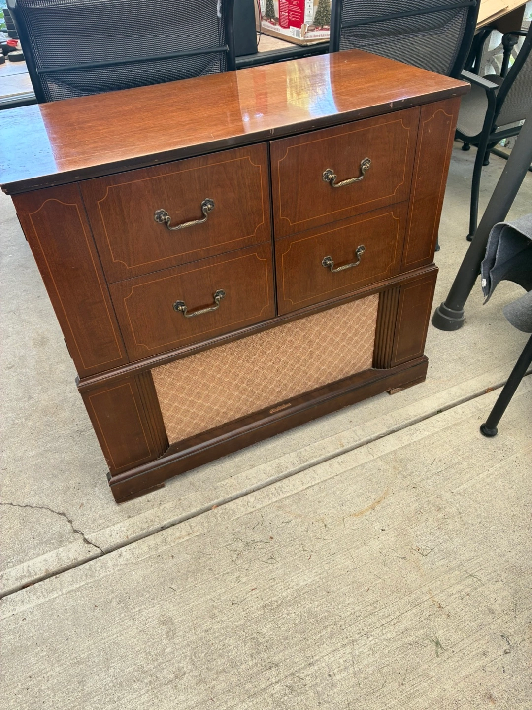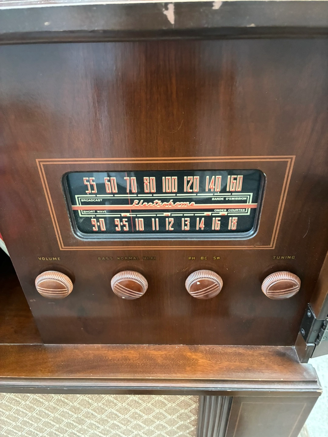 Radio, not working has a hum to it not sure why turntable also rotates, but then has the same hum. someone who likes to dabble in it might be able to get it fixed in five minutes, but it is a beautiful furniture piece. Good shape Selling a vintage Electrohome record player cabinet! It has a classic look with a built-in radio and record player. Perfect for adding a retro touch to your home!