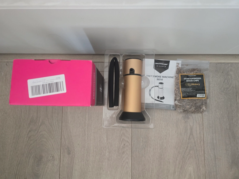 Originally bought for $65, this handheld smoker is in excellent condition and ready to use. It's lightweight and easy to operate, making it a great addition to any kitchen or bar. Included are wood chips to get you started right away!