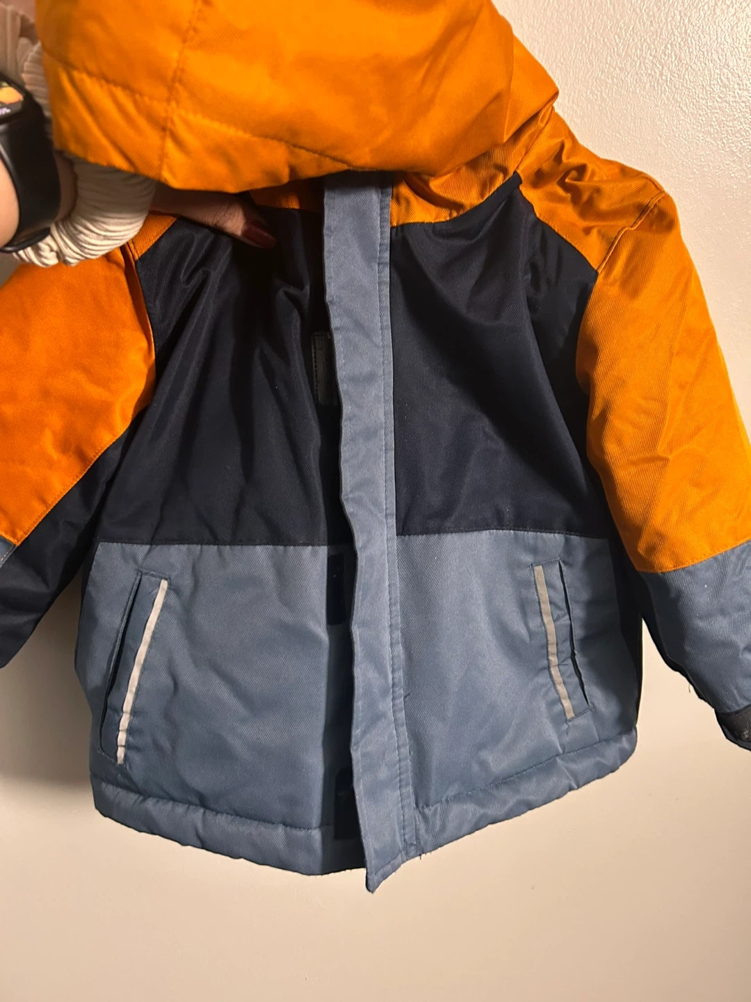 Keep your little one warm this winter with this adorable George snowsuit! It's a size 3T and features a fun orange and blue colour block design. Perfect for playing in the snow or just staying cozy on chilly days! Still in great condition, selling as my son out grew it.