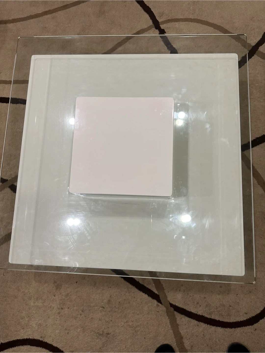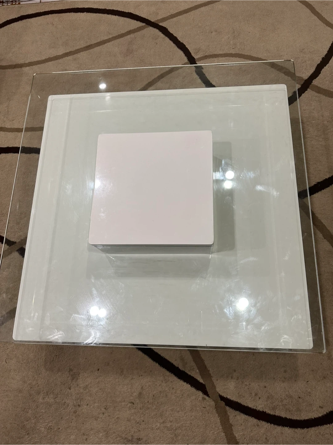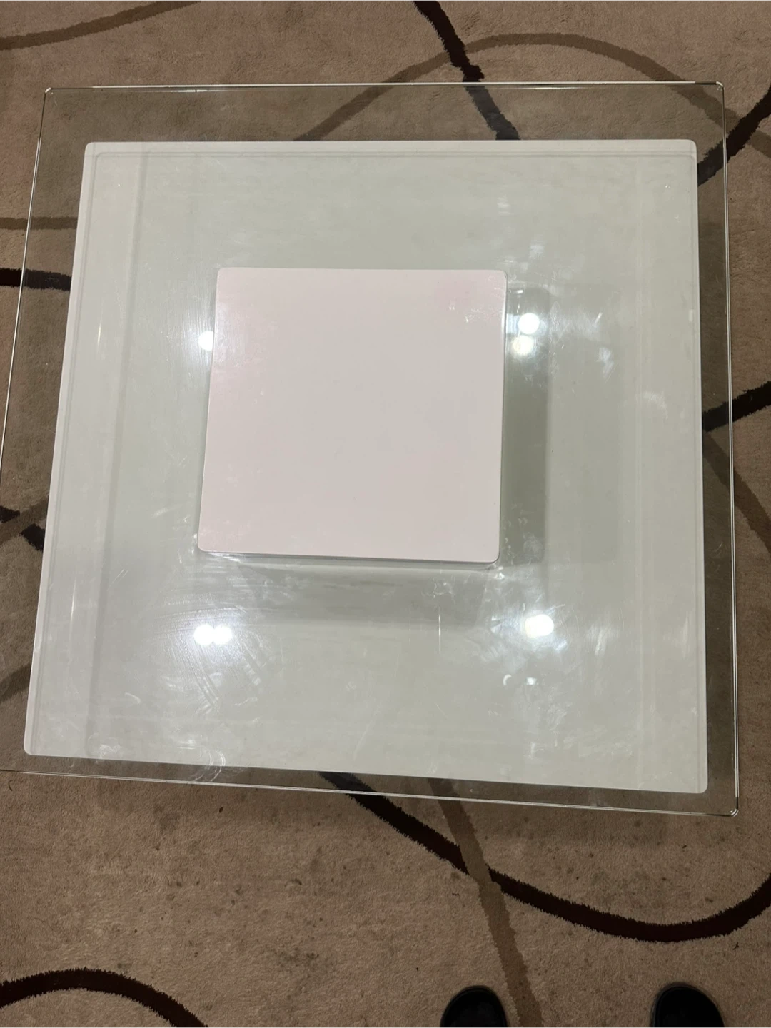 Selling a glass top coffee table by Wade Logan, model Artavis. It has a modern design with a glass top and a white base. It originally retailed for $1,020. Great for adding a stylish touch to your living room