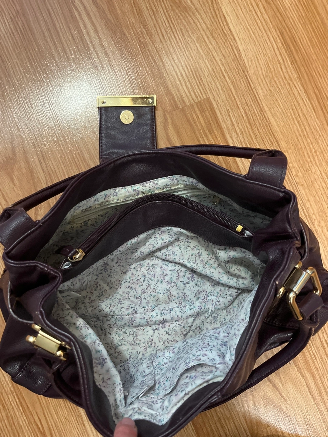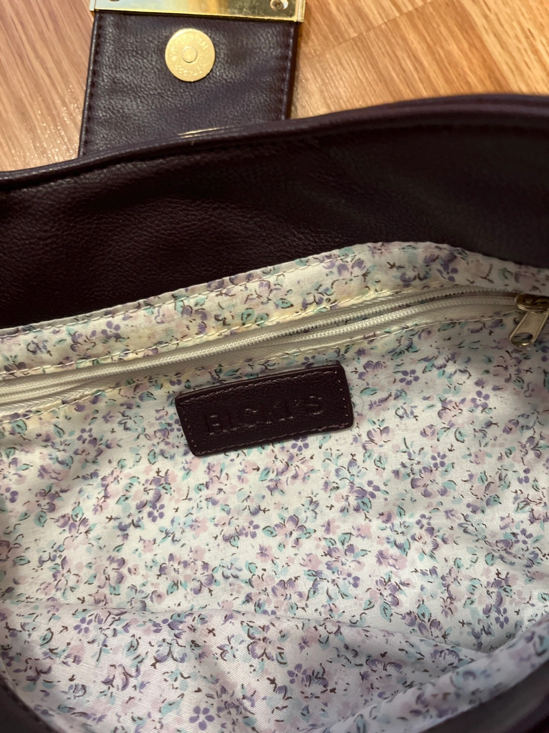 A lovely dark purple leather purse from RICKIS. It's in great shape and ready for a new home! The interior has a floral pattern.
